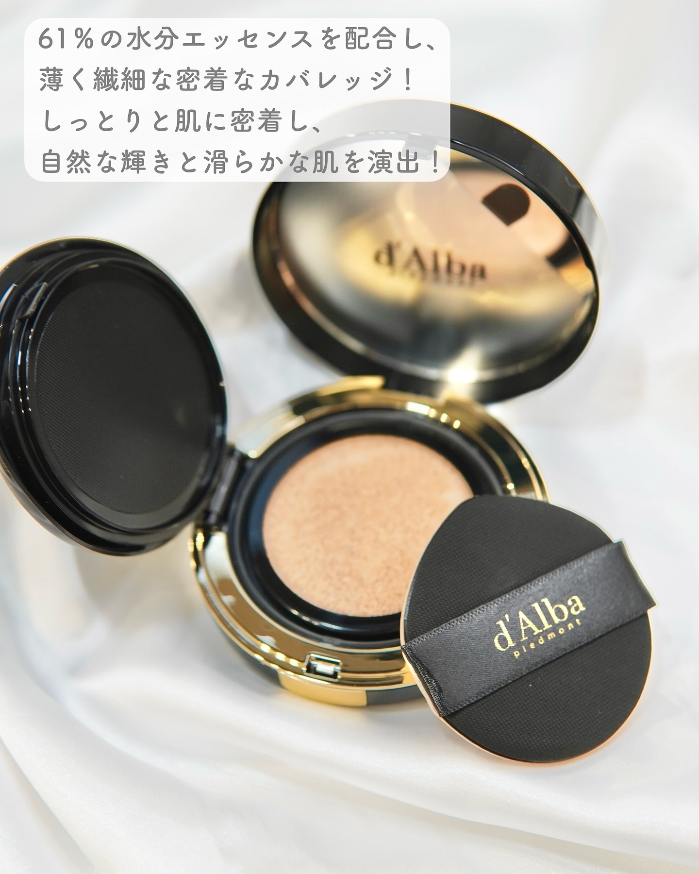 艶がやっぱりすごかった...🥺‼️ 「CAミスト」として名高いダルバからでたクッションファンデーションです 61%の水分エッセンスを配合していて、しっとりと肌に密着し自然な輝きと滑らかな肌を演出してくれます シワ対策やたるみ対策にも有効な成分が入っているそう✨ アンチエイジング効果もあるベースメイクを探している方におすすめです♡