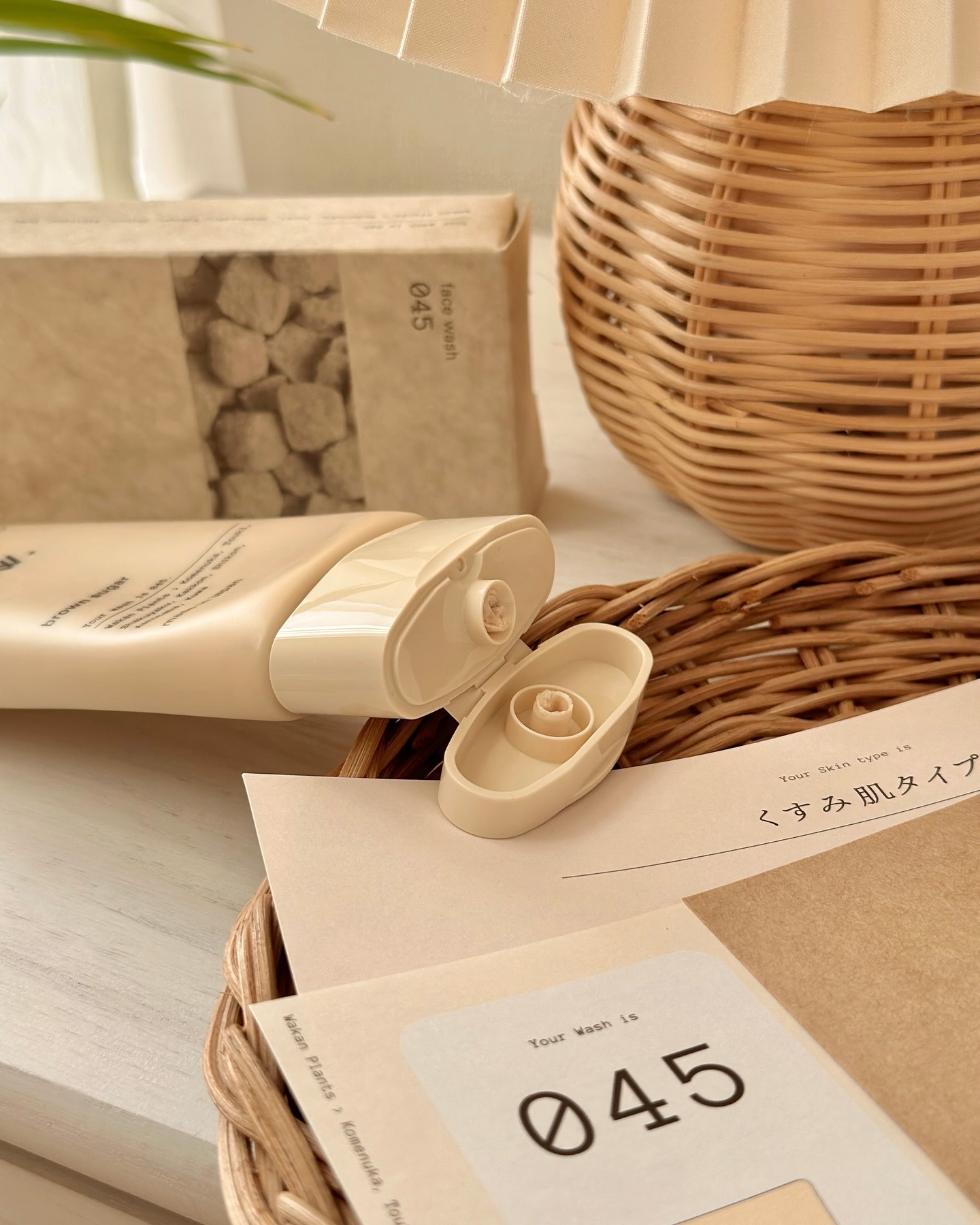 - 17問の美肌分析のもとご提案する、和漢由来のデュアルスキンケアの洗顔です。直近の肌悩みや食生活、体の状態の結果から回答者の状態を分析。ドクダミ、ショウガ、クワ、アシタバなど様々な和漢素材からあなたに寄り添った成分をセレクト。日々、肌が受ける外的環境による汚れをしっかり洗浄し、健やかな肌をキープします。肌悩みにあわせた、選べる3種類。 【フェイスウォッシュ045】 古い角質によるくすみ、ツヤがないなど、もやもやが尽きない肌のために。うるおいを補い保つ和漢植物と植物由来エキスの配合で、クリアな素肌へと導きます。さらに、紫外線による乾燥ダメージに向き合う厳選成分も配合し、肌へトータルに働きかけて、美肌への自信がみなぎる毎日に寄り添います。角質をやさしく取り除く、スクラブi nクリームタイプ処方。ナチュラルヒノキの香り。