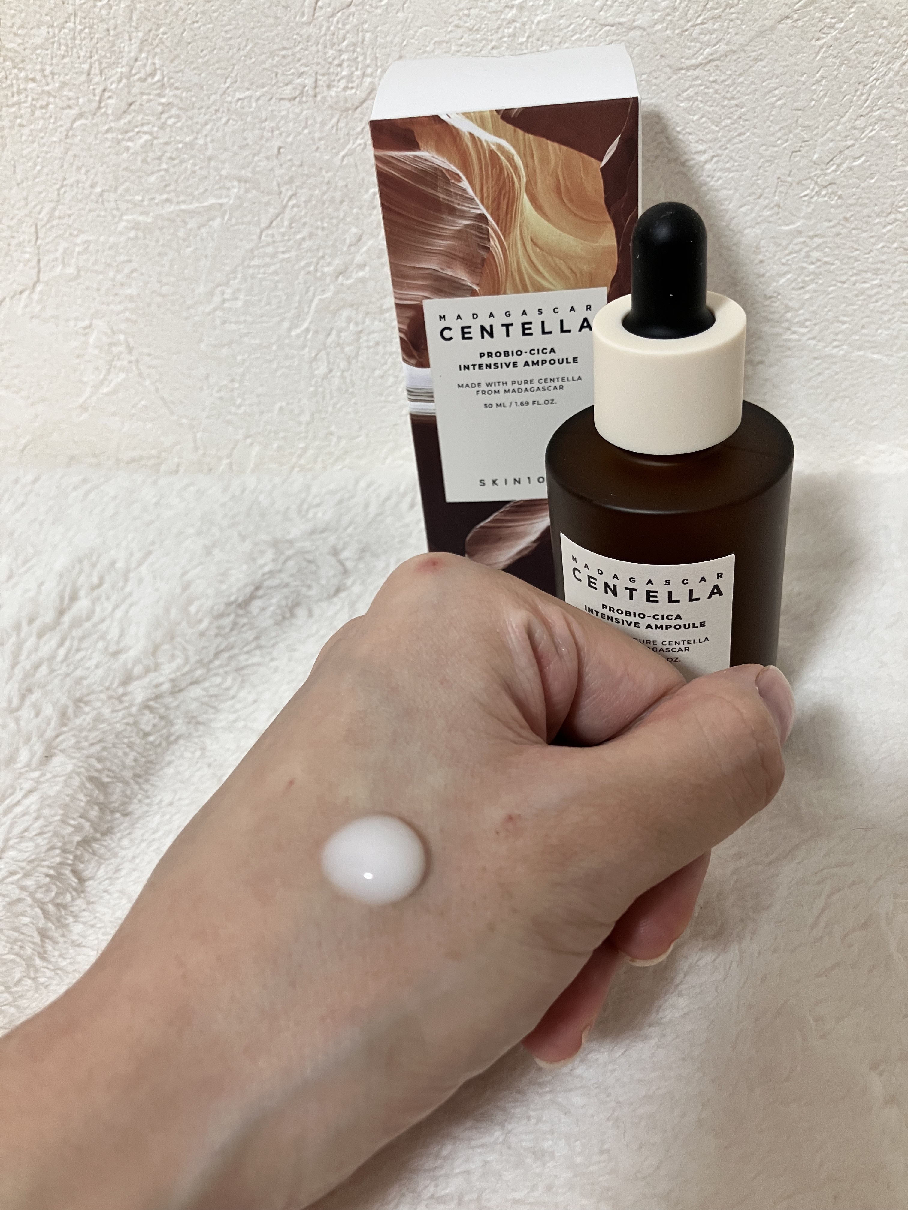 開封してぱっと見の印象は、乳液みたいだと思いました。すーっとなじんで感激しました!思わず、おぉー!と独り言をつぶやくほど(笑) なのに肌がもちもちで、自分が乾燥肌であることを忘れそうになります。冬は特に顔の乾燥がひどいので、ファンデーションを付けられなかったのですが、この美容液があれば化粧のりも良くなり、乾燥を気にせずメイクを楽しめそうです♪ シカ配合で荒れた肌の鎮静作用も期待できます。また、ナイアシンアミド配合でエイジングケアにもおすすめです!