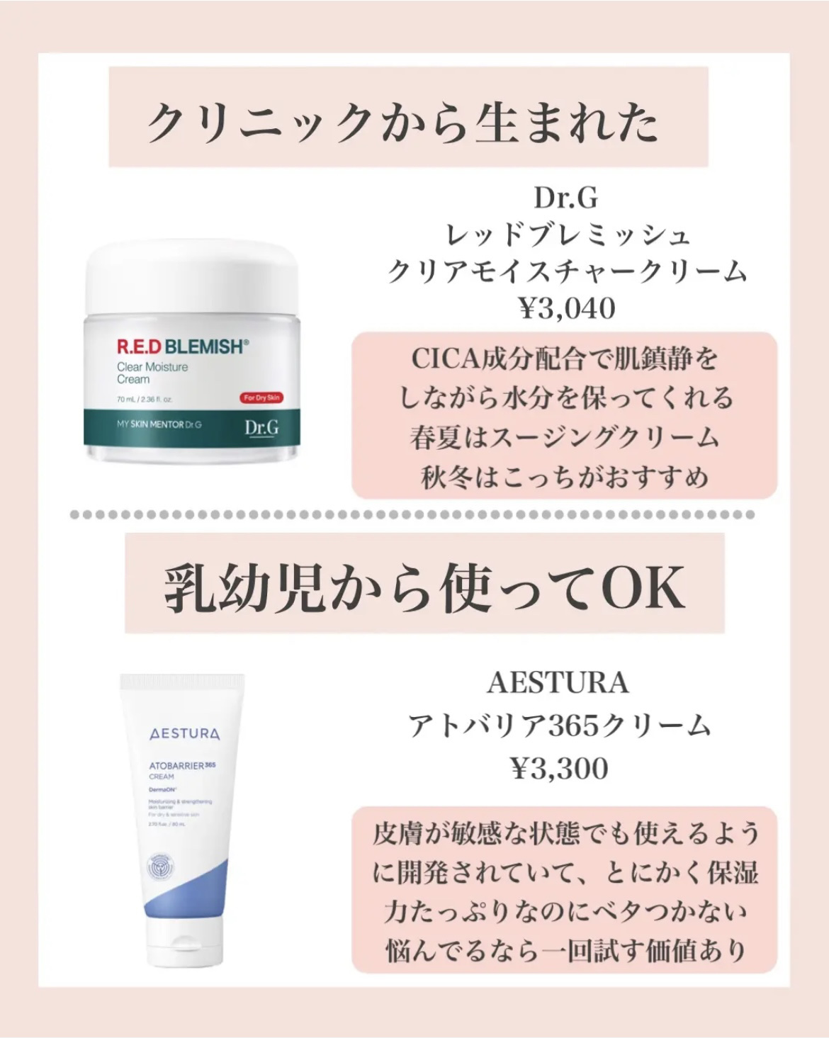 @rena_korea.skincare・\自分の求める「かわいい」を追求するための情報を発信中♡/@dr.g_official_jp様から素敵なクリームを頂きましたのでクリーム4種類比較してみました🥰✔️とにかく赤みを鎮めたい人✔️乾燥もす...