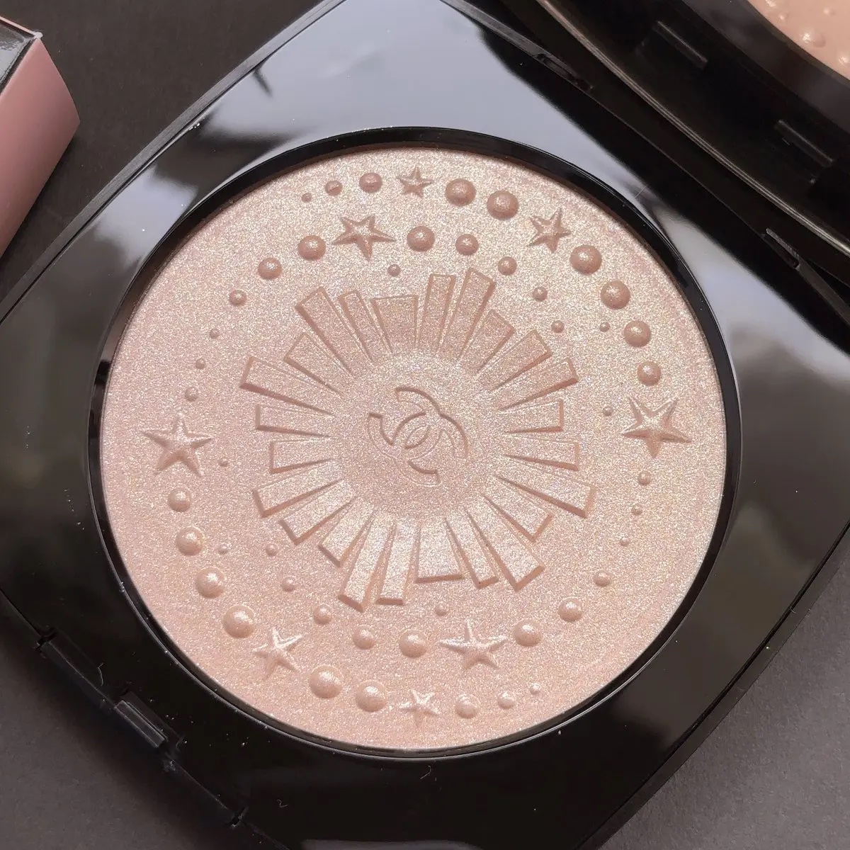 CHANELホリデーのデカい!!そしてエンボス加工が可愛い〜!ホワイトパールとピーチピンクの煌めきがすごく綺麗♡⃛デコルテにも使えるみたいだし✨️✨️ホリデーらしいハイライトだったので買ってよかった♡CHANELダイヤモンドダストドゥシャネル...