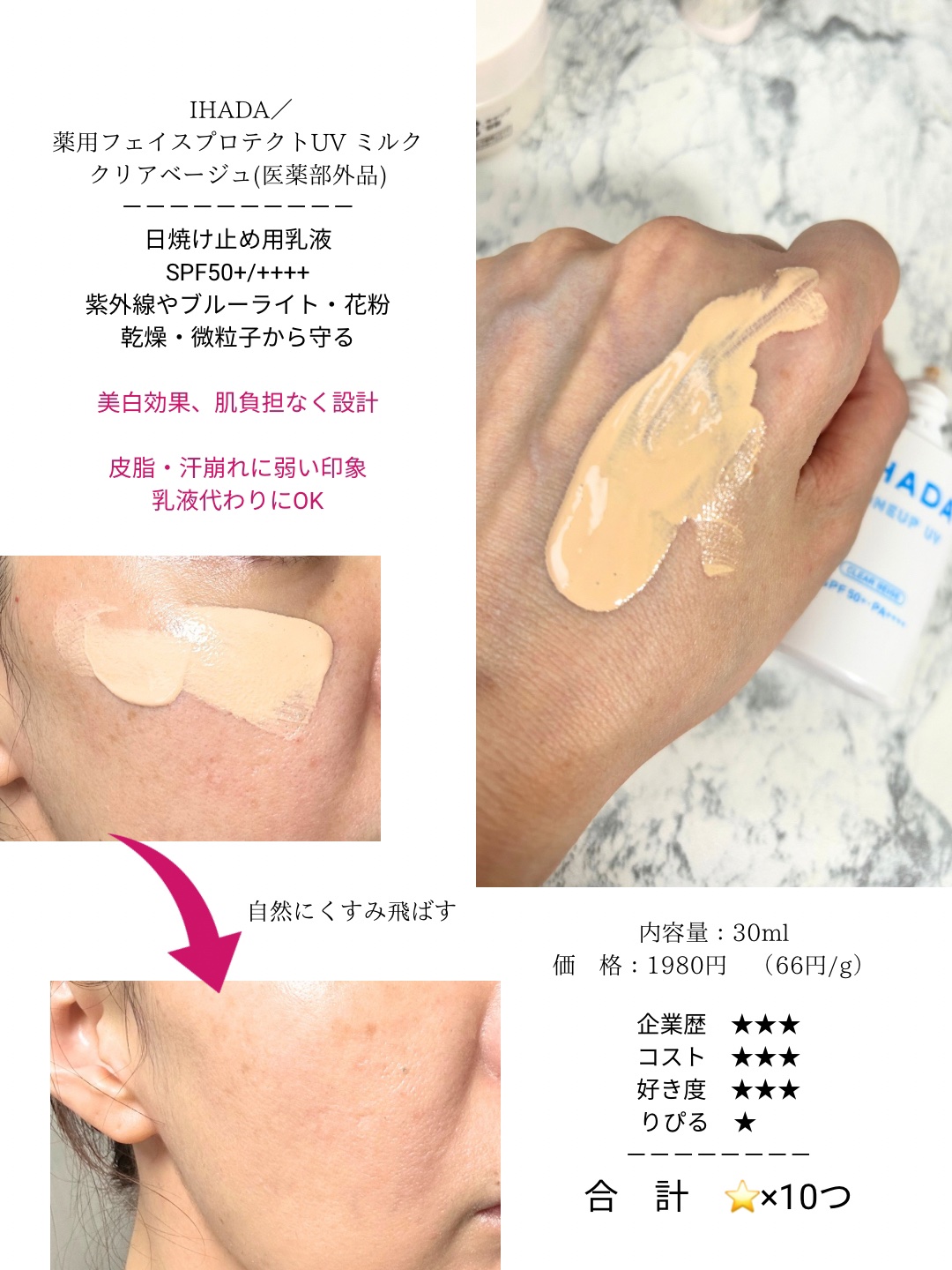 レビューありがとうございます✨トーンアップしないUV下地を探していたのでIHADAが気になる💕