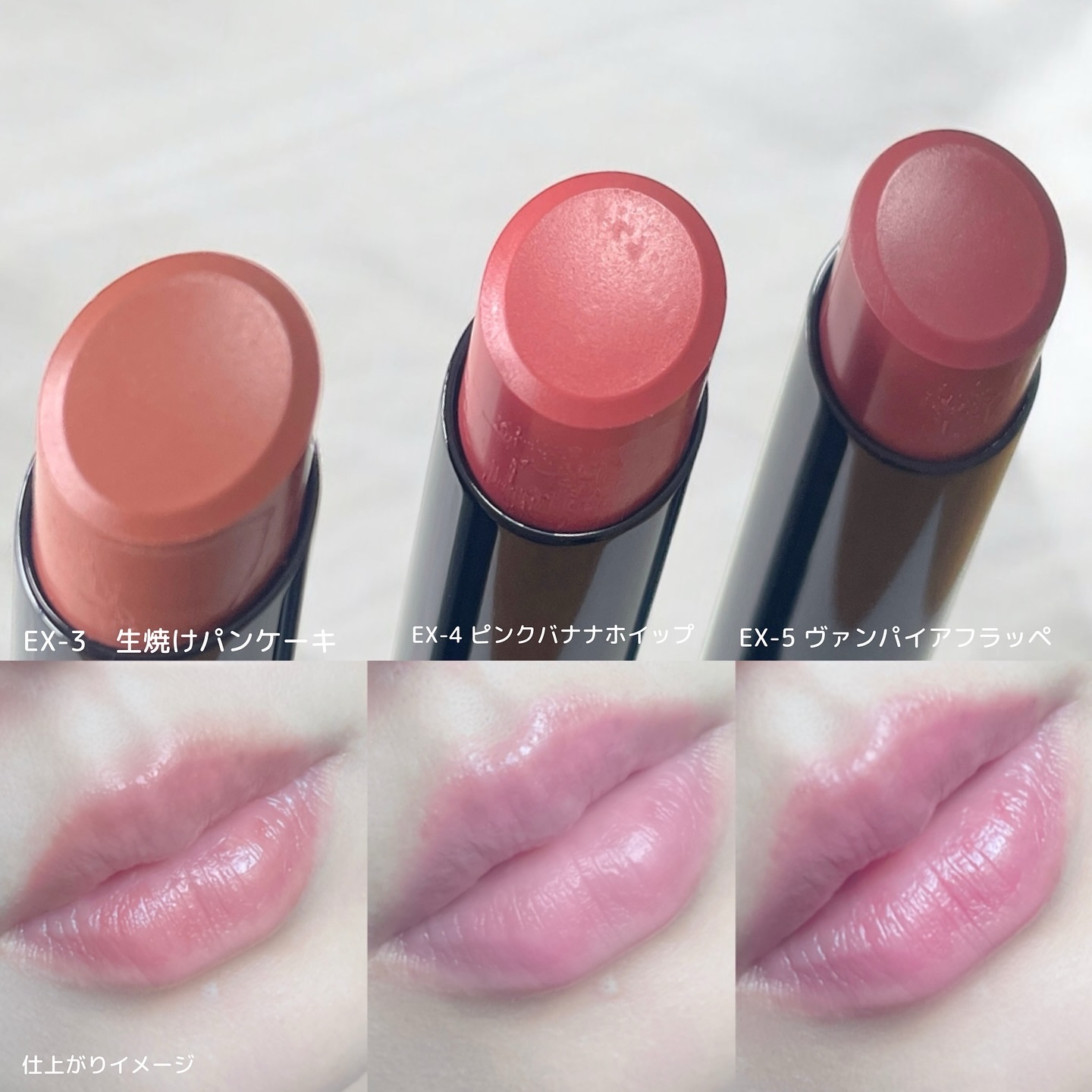 盛れるベージュ系カラー3色が限定色で登場! その名もクリーミーモンスター! ✔︎[ EX-3 生焼けパンケーキ:クリーミーベージュ系 ] ヌーディーなオレンジベージュ系。 なじみがいい色で落ち着きメイクに。 ✔︎[ EX-4 ピンクバナナホイップ:クリーミーピンク系 ] 落ち着いた粘膜ベージュピンク。 ピンクだけどかわいすぎないところがいい…!