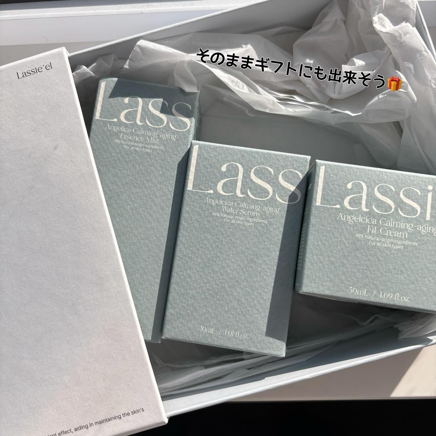 99%植物由来成分でやさしくスキンケア🌿 Lassie'elのアンジェリカ・カーミングエイジングコレクション♡ ラシエルだけのシグネチャー抗酸化鎮静成分であるAngelCica™ の働きにより強力な抗酸化効果と鎮静効果。 見た目もおしゃれで香りも大好き🤍 軽めの使用感なのに水分たっぷりのお肌になれてよかった🫶🏻