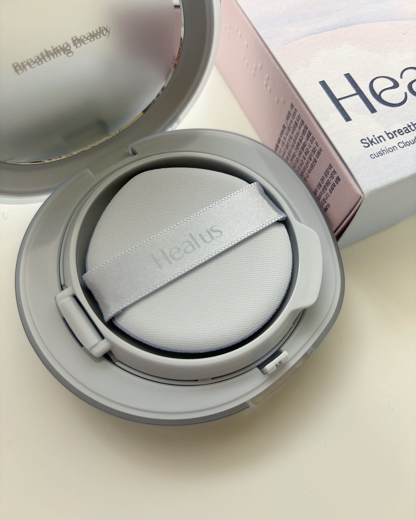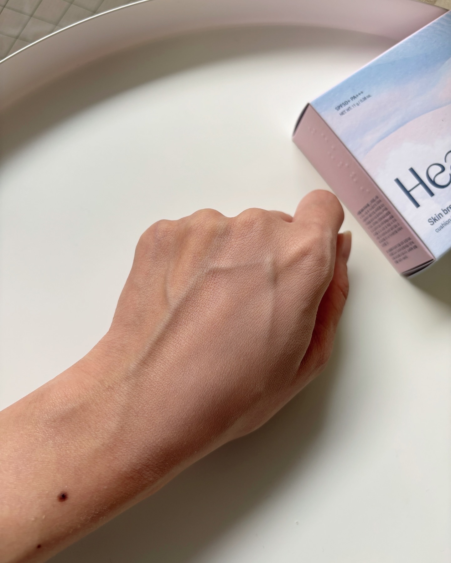 セミマット質感で肌の色ムラや毛穴もソフトフォーカスしてくれるのに、雲のように軽く厚塗り感ゼロ! ヒーアスのクッションは本当に軽い付け心地で時間が経ってもくすみにくいしパサつかないから、オンオフ問わず使えてお気に入り♡