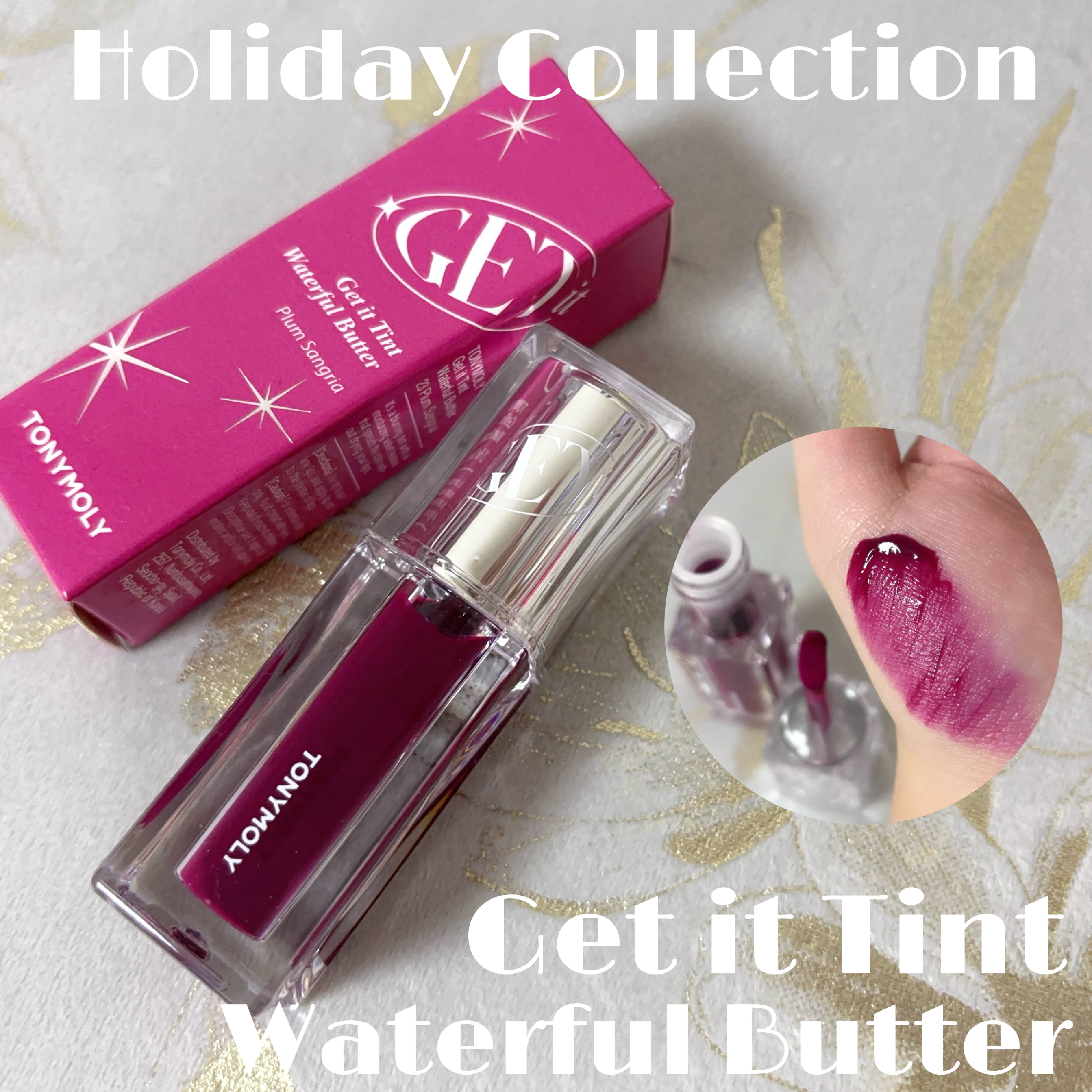 ゲットイットティント ウォーターフルバター 今回頂いたカラーは23 Plum Sangria プラム系発色になってて濃いめ発色のマットリップ ゲットイットティントグレーズバーム 頂いたカラーは14 Snow Flower ラメが入ったクールプランピング チークトーンリップアンドチークデュオバームはTONYMOLYの新作コスメ!リップとチークが1つのケースに入ったもので