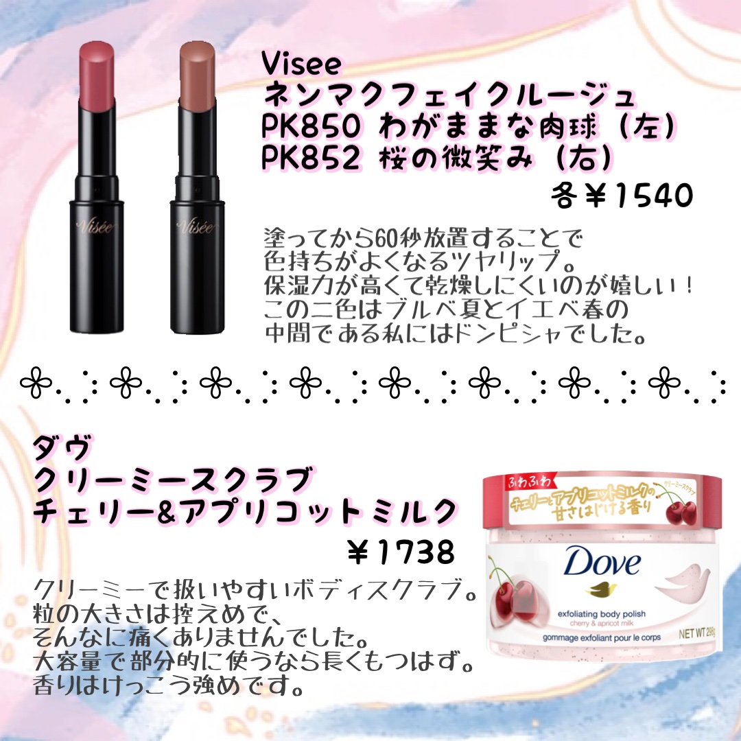 LIPSの購入品紹介です🪞1⃣キャンメイクプランプリップケアスクラブ02クリアピンク→プランプリップケアスクラブ自体は何本もリピしていますが、愛用しているクリアが品切れだったため初めてのピンク購入。私はクレンジング前にティントを浮かすのにも使...