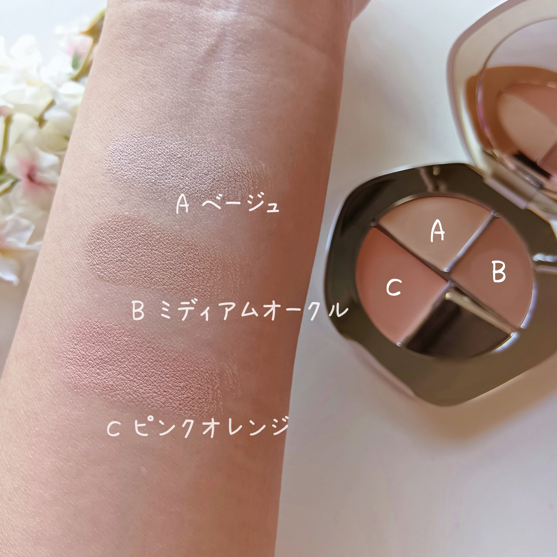 - 様々な肌悩みにアプローチして開発された三色一体型コンシーラーパレット。 3つのカラー、2つのテクスチャーがお悩み別にアプローチ、シームレスな美しい肌に仕上げる。パレットのカラーはクールトーンとウォームトーンを兼ね備えているため、メイク初心者の方でも色選びに悩まずにメイク可能。 さらに、右下部分に斜めのパレットが設計、パレットで3つのカラーを調合して使うことで自分好みの色を調合することができ、様々なお悩みを解決。