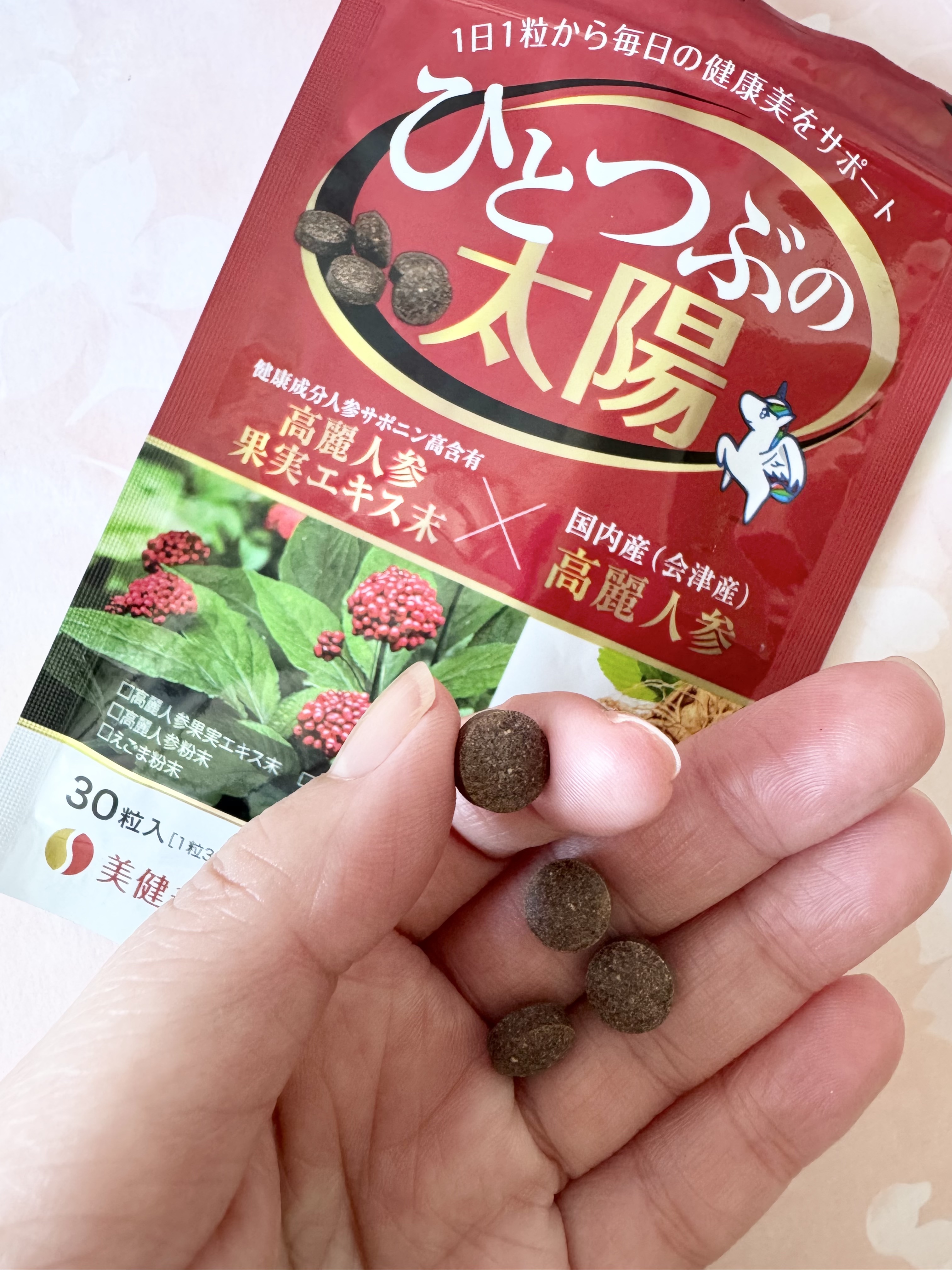 高麗人参のパワーで元気に。 一粒に人参サポニン40mg以上配合。 美容成分として4種類の成分配合。 私のお気に入り成分がたっぷり。 健康と美容のオールインワンサプリ。 これで美と健康を維持したい。