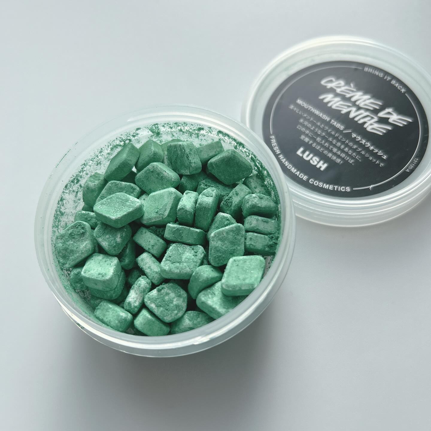 固形タイプのマウスウォッシュ🫧 基本的にブラッシングやフロスの代わりにはならないので歯磨き後に使う商品です お出かけの時に本当に便利!!! 固形なので液漏れの心配もなく ミントの香りで爽快感もあります🌱