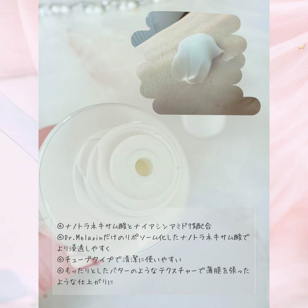 Dr.MelaxinのTXシリーズはシミの飲み薬や注射に使用されるトラネキサム酸配合スキンケア代表作!!! ナノトラネキサム酸でより浸透しやすく べたつかないさらっとテクスチャ一で季節を問わず年中使用できそう◎ クリームにしてはさっぱりした軽めの印象なのでベタつきが苦手の方にはすごくおすすめクリームです☝️