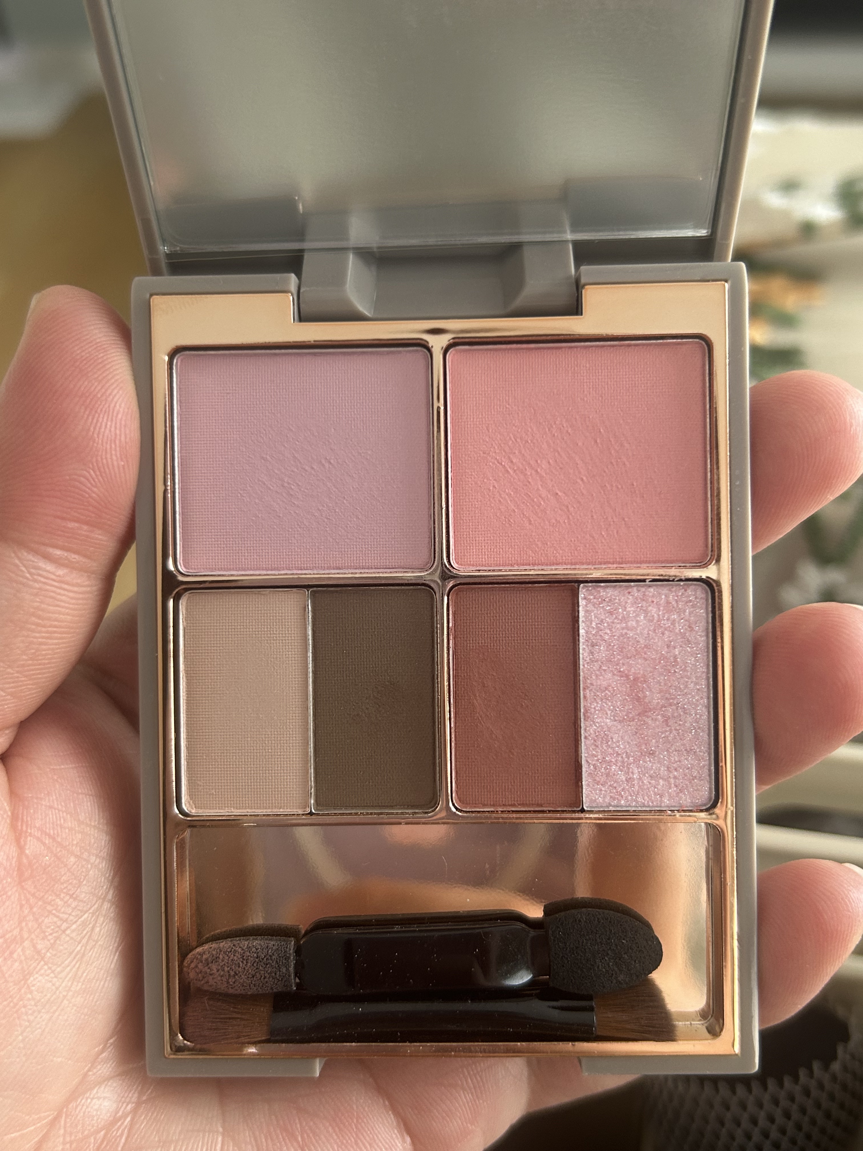 高級感すごくない??1000円台と聞いて耳を疑うレベル。かなりしっかりした作りのパレットで、中には全面の大きなミラー付き。なんとブラシ・チップが2本もセットになってるの! アイシャドウだけじゃなく、チークやアイブロウ、シェーディングとしても使えてしまう万能すぎるパレット。アイシャドウにもチークにも使えるピンクは大きめ、涙袋カラーや締め色は小さめ。まさに理想のバランスで入ってます🥹💗 マットの粉質はふわふわ。淡く可愛らしい色味との相性が抜群。ラメは多色に輝くザクザク系で華やかな仕上がり🤍💭