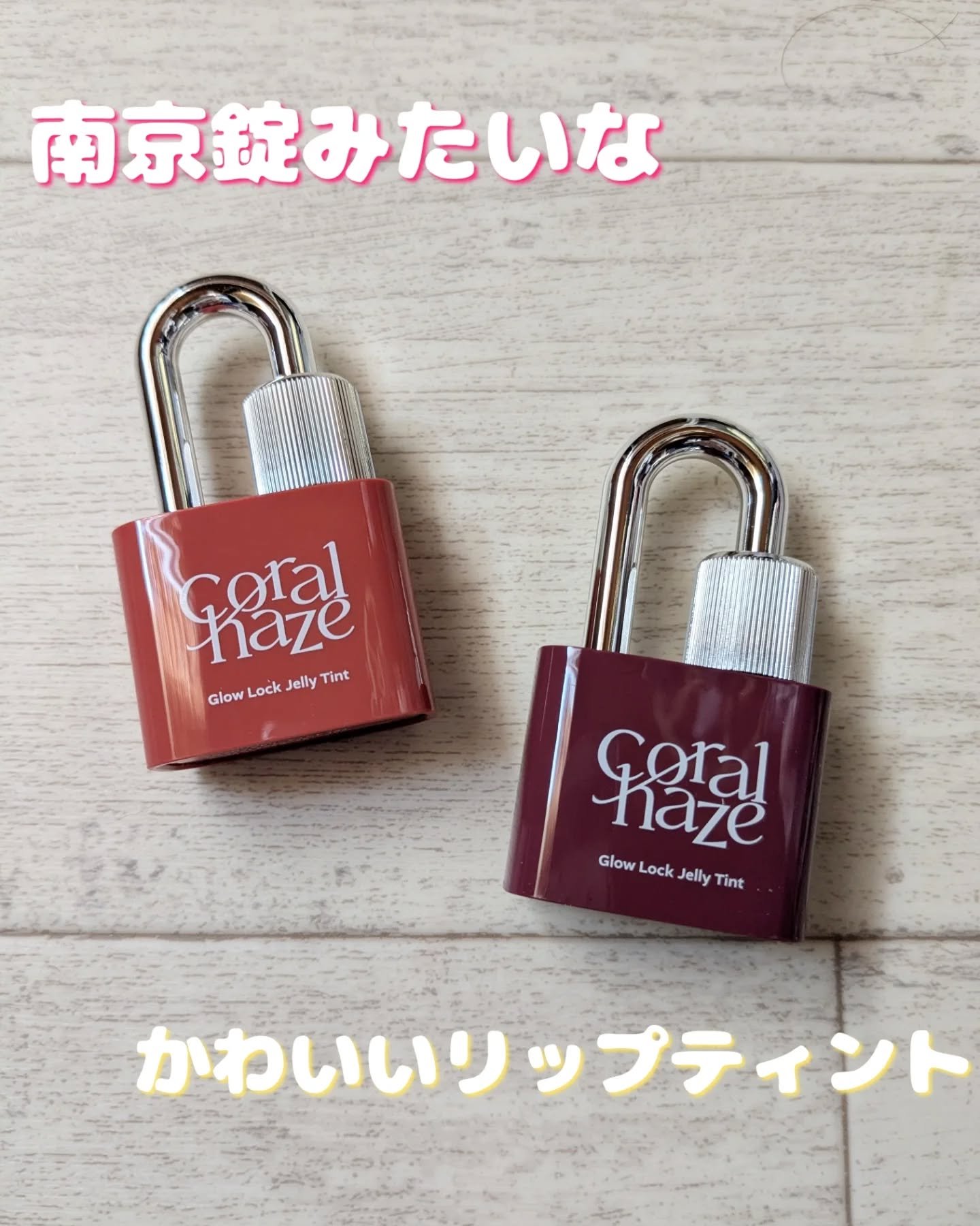 南京錠🔒の形がかわいいリップティント✨ カバンなどに付けて持ち歩きも便利! ほんのりと甘い香り。ぷるっとした塗り心地でツヤがあり素敵なカラーです💓 スーパードラッグひまわり様で購入できます!