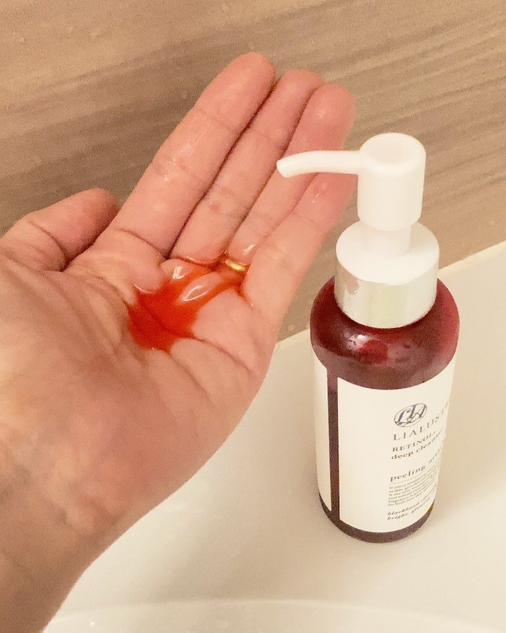 レチノールで洗う新世代のリキッド状クレンジング✨ 美肌力を高める「アスタキサンチン」「トマト果実エキス」「クチナシ果実エキス」「シソ葉エキス」「ビワ葉エキス」が配合されていて、鮮やかな赤い色をしています。 つっぱりやヒリつきもなく、使いごこちはマイルド。 毛穴や角栓にまでアプローチしてくれて、肌がつるんとなめらかに感じるのが嬉しいです。 ローズとゼラニウムがほのかに香って、クレンジングしながらリラックスできています。