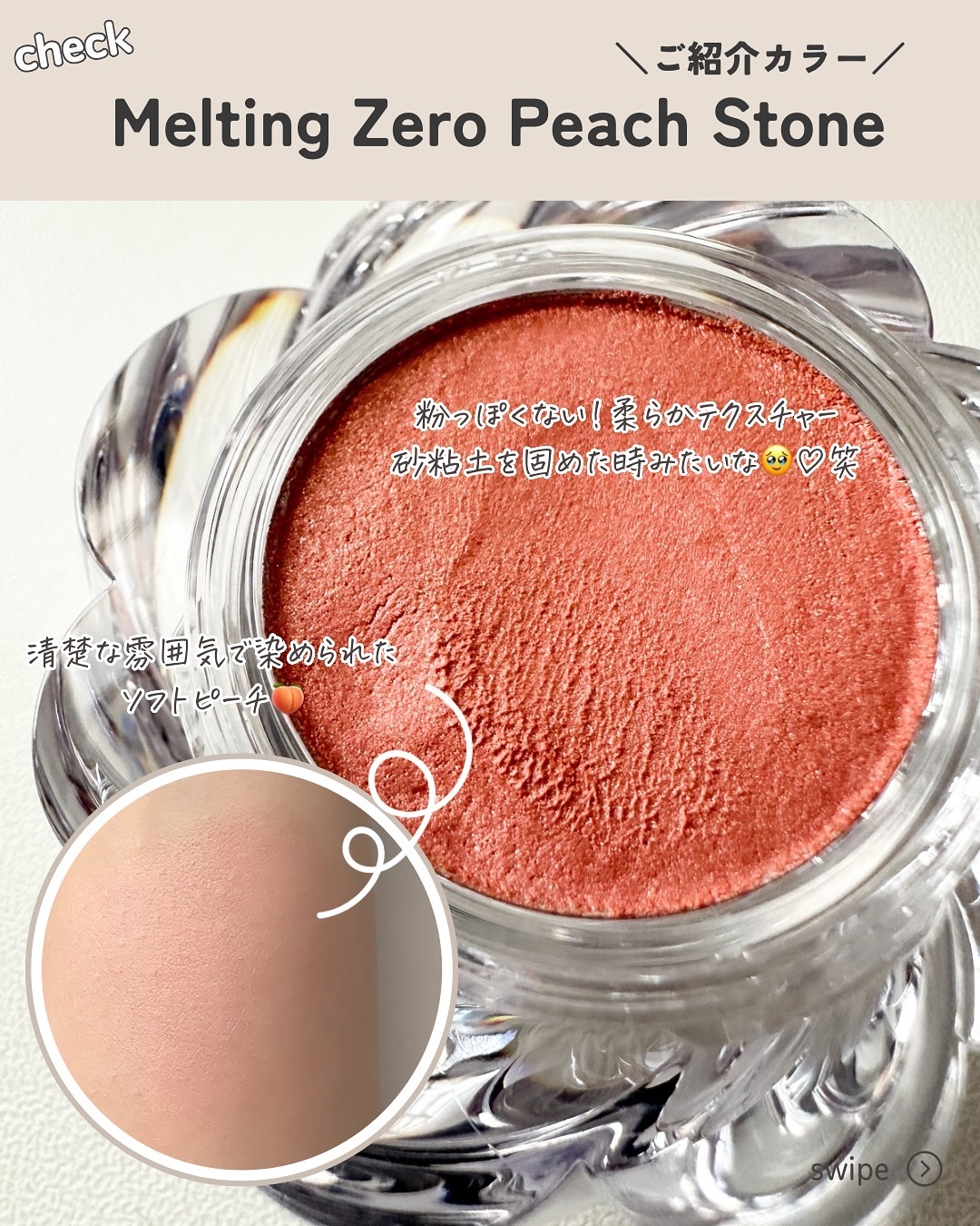 ムジゲマンションのパケ優勝シャドウから、単色シャドウが出たの知ってた??オブジェみたいなガラス容器にアイシャドウが入ってるの🥹💞 ベルベットのようなしっとりした質感で、ぴたっとまぶたに密着してくれる✨ 見た目はピンクっぽいカラーなのに、つけると肌馴染みのいいページュカラー!光に当たるとちらちら光ってかわいいよ💞