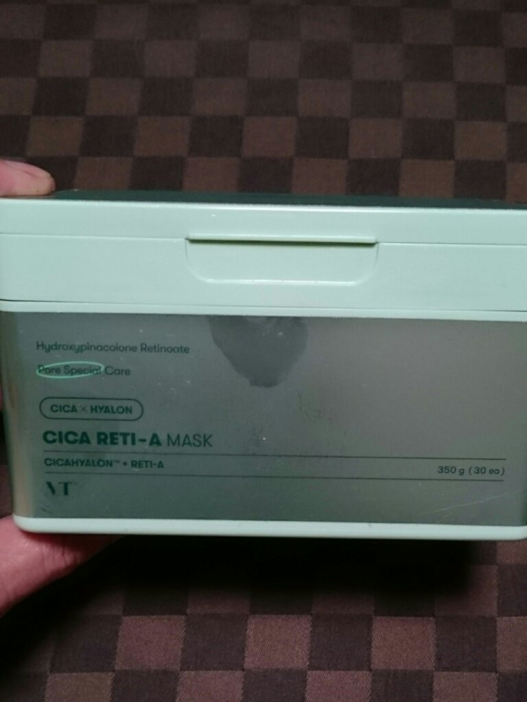 VTシカレチAマスクVTCICACICARETI-AMASK・qoo10メガ割にて購入。・レチノールやバクチオールが入っているということで成分に惹かれて購入。・さっぱりしていて使いやすい。シートは濃い緑のパッケージのCICAのものより気持ち厚...