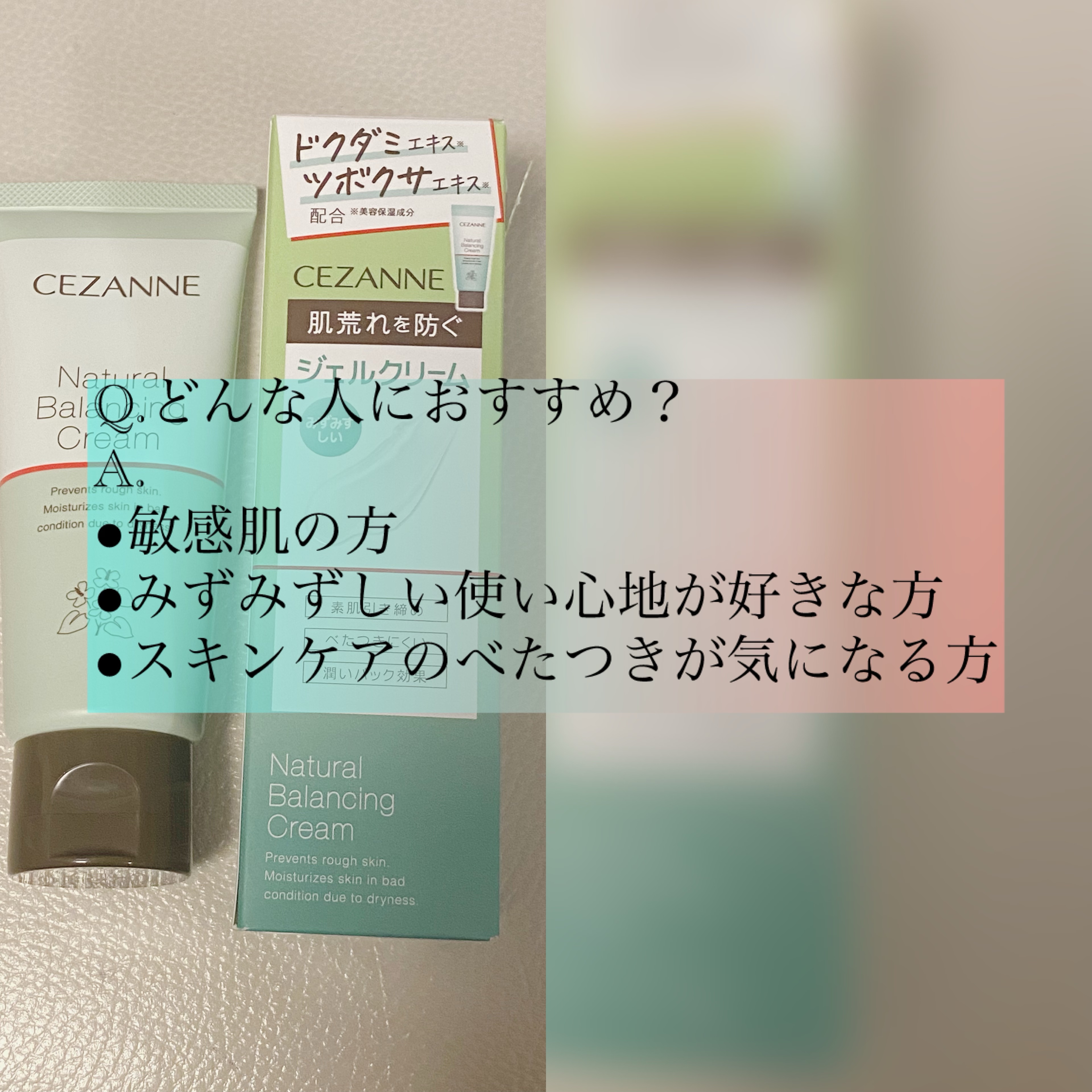 CEZANNEナチュラルバランシングクリーム【使った商品】ナチュラルバランシングクリーム【商品の特徴】¥715円(税込)70g美容保湿成分素肌引き締め成分配合合成香料合成色素アルコールフリーノンコメドジェニックテスト済【使用感】無色透明かつ香...