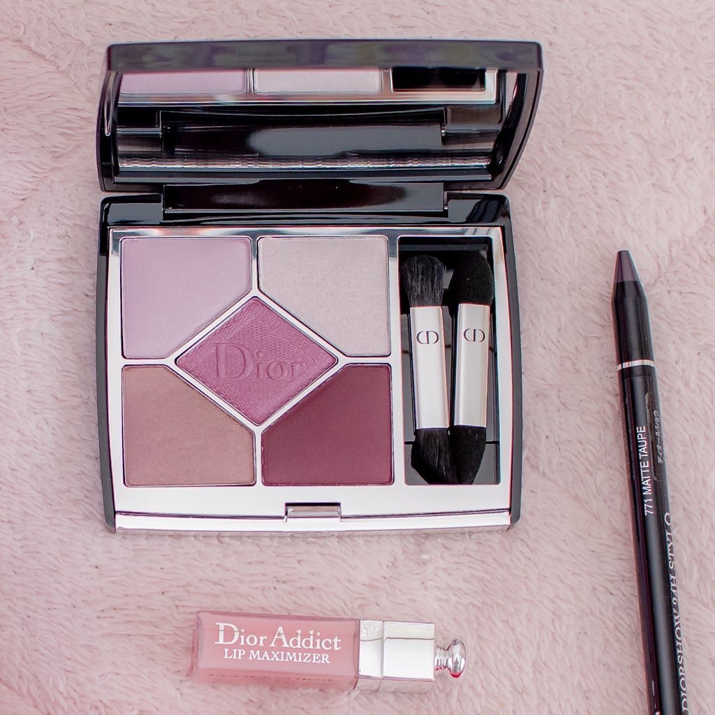 #今日のメイク♡Dior サンククルールクチュール 079ブラックボウ♡LUMIURGLAS Skill-lessLiner 07スモアグレージュブラックボウでグレー系メイク✨仕事なのでラメは控えめです♡左上のくすんだピンクが優れもの!メイン...