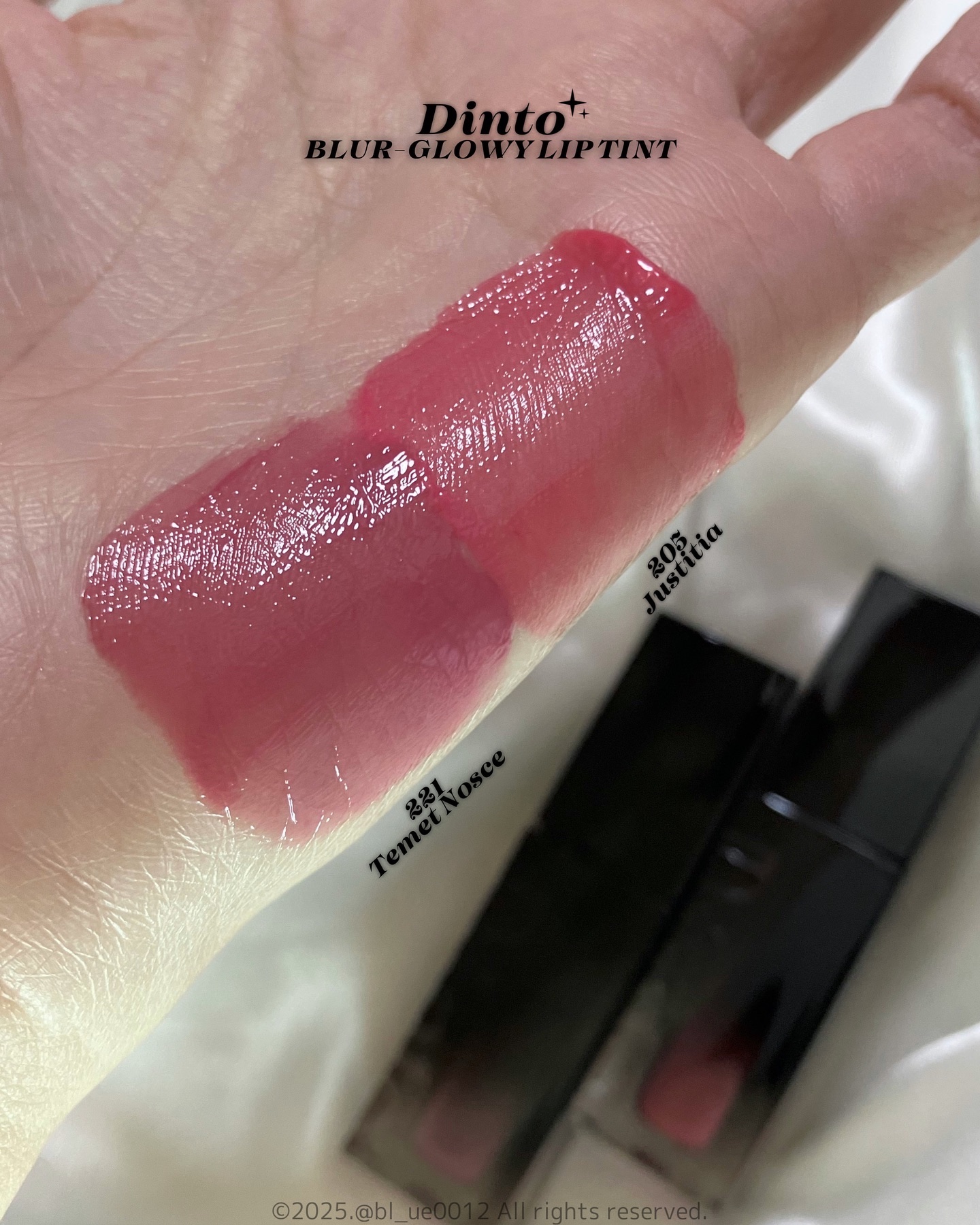 しっとりとした光沢感とべたつかないつけ心地、塗った直後にティッシュオフしても残る色味、絶妙なカラー展開が魅力のDintoティント♡ 221 Temet Nosce アッシュなモーヴピンク。青みと白みのバランスがかっわいいお気に入りカラー 229 Dignitas ダスティーローズ。そんなに深みはなくてちゃんと血色感の出るカラー。