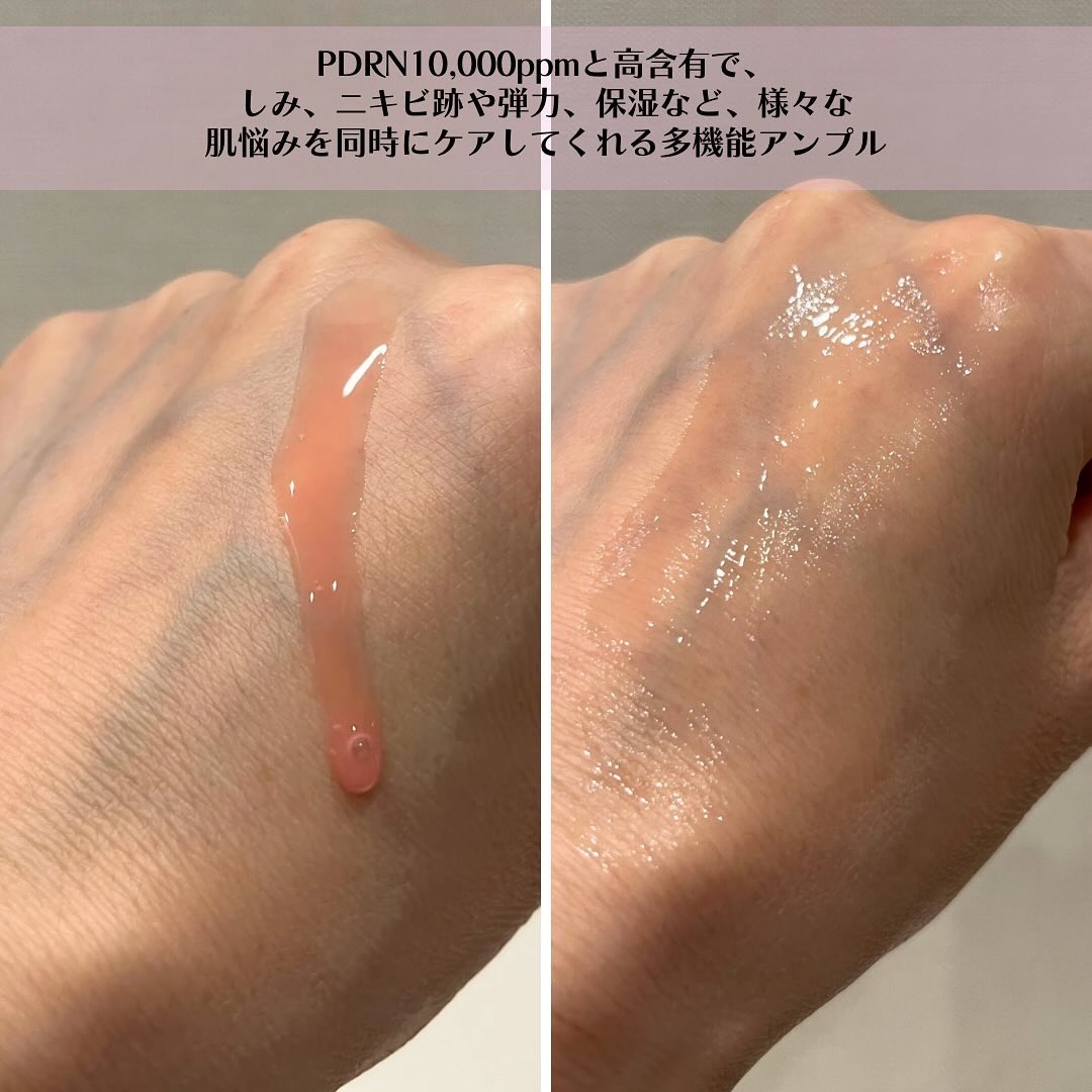お家でも高級エステ級のケアができる美容液✨️ とろーんとしたテクスチャーでなめらかに伸びてくれました☺️ サーモンPDRN は肌のDNAに95%近い成分でコラーゲン合成をサポートしてくれるんだって! お肌の鎮静/肌バリア機能をサポートしてくれるのも嬉しい♥️