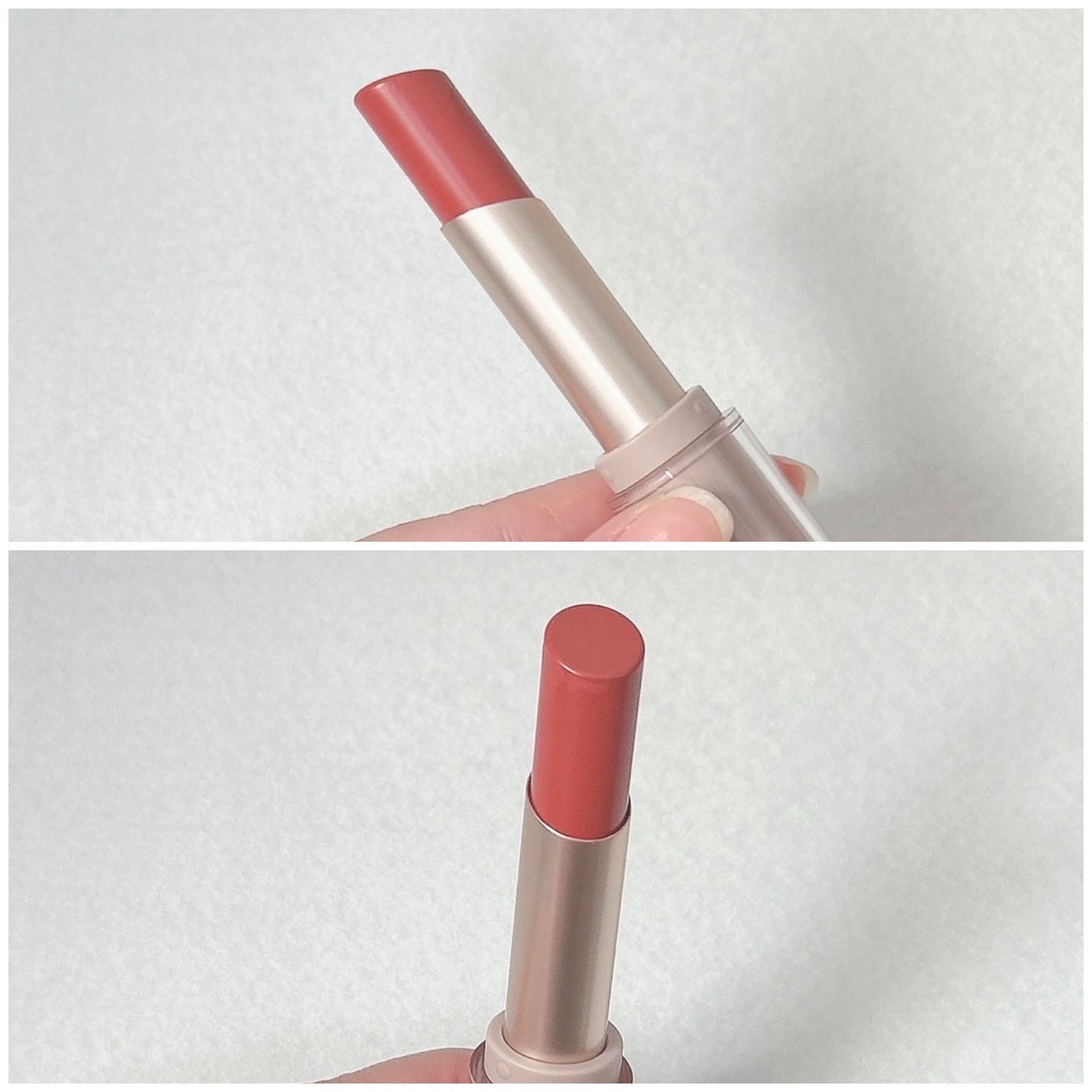 ソフトなコーラルオレンジ 少し白みを感じるシアーな発色 イエベ春さん大優勝のカラー♡ もっちりとしたツヤが最近のトレンドっぽい! フルーツ味のお菓子のような甘い香り ティントじゃないからオフしたら色残りはしないけど、マスク時代が終わったからモーマンタイ