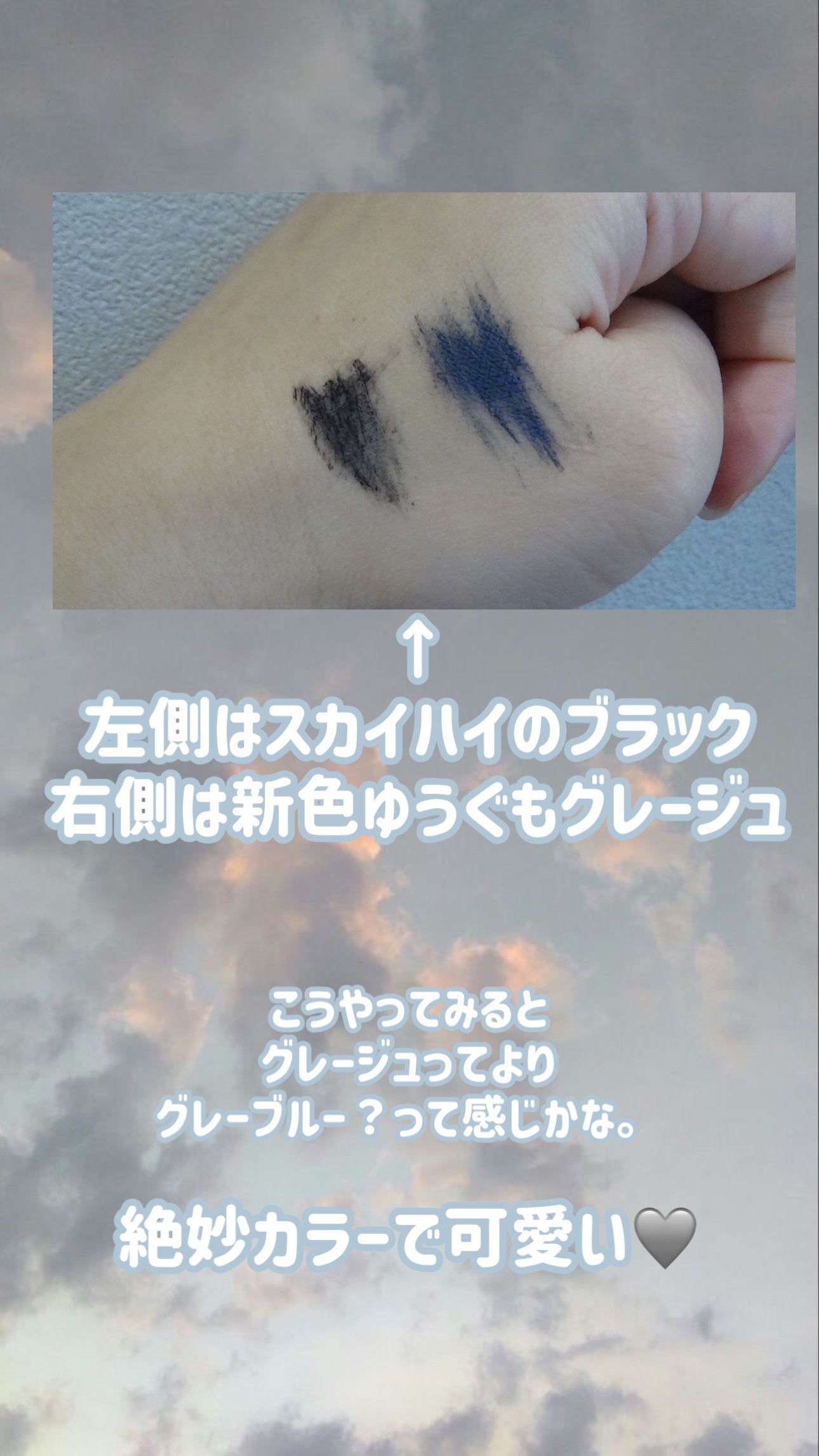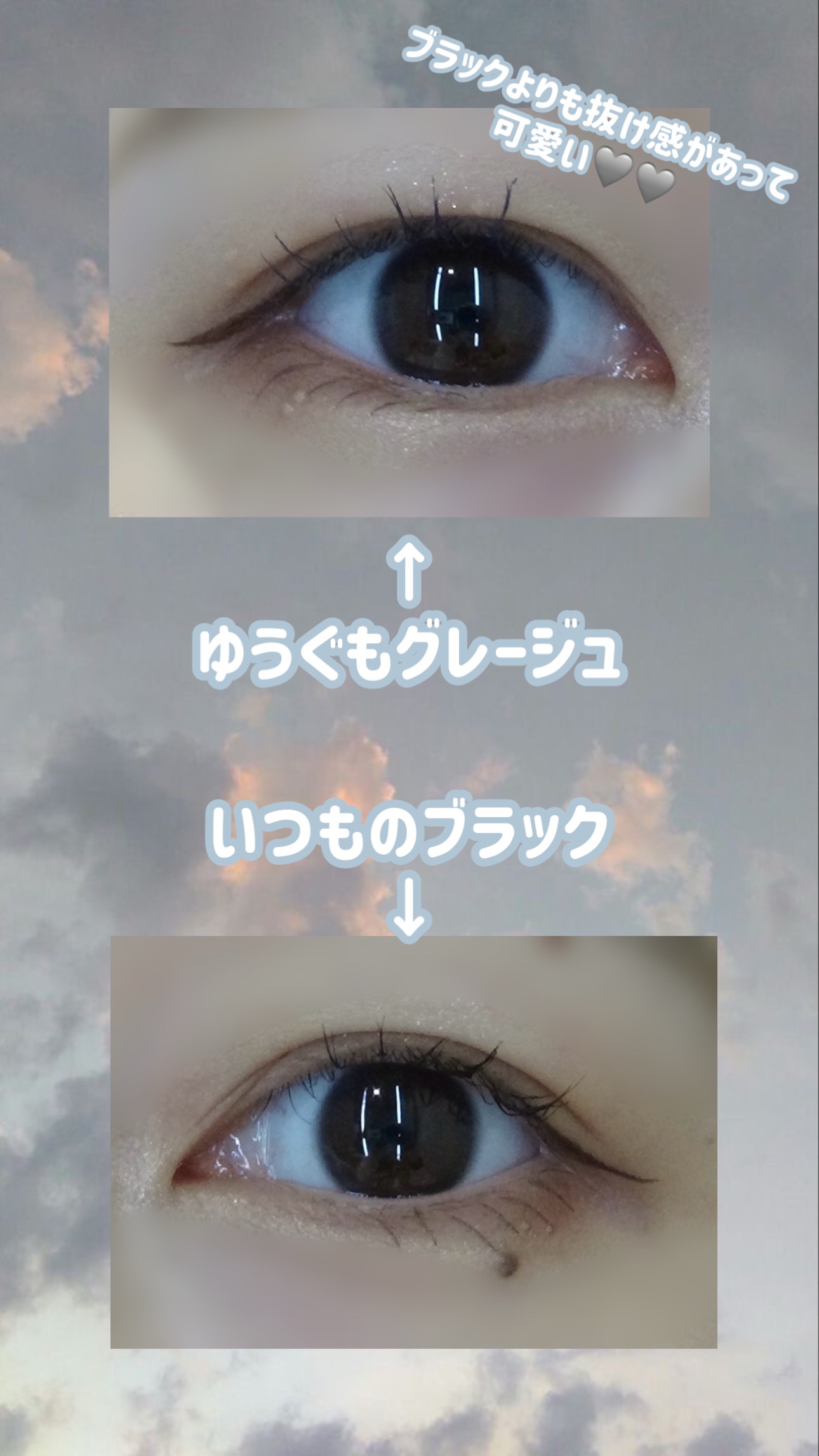 新色のゆうぐもグレージュは、黒に白を一滴プラスしたようなカラーで、透け感のあるブラックって感じの仕上がりになるよ🫶🏻 普通のブラックだと主張強すぎて、ブラウンだと存在感が薄すぎる...ってなっちゃう人にもおすすめ✨ スカイリフトブラシは、ブラシとコームのいいとこどりで、液がつきすぎないからダマにもなりにくいのがまじで良い~~👍🏻