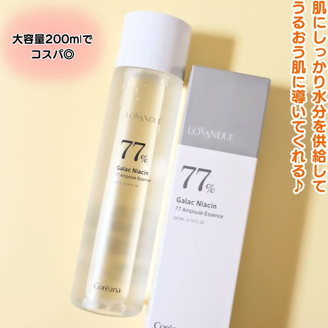 ガラクトミセス発酵濾過物77%配合・ナイアシンアミド・ビワの葉エキス&スペアミントエキス さらさらのテクスチャーでクセがなく使いやすいです♪ 大容量でたっぷり使えるのも嬉しい。 有効成分たっぷりでコスパの良すぎるエッセンス。 Qoo10JPで購入できるので、気になる方はチェックしてみて下さい✨