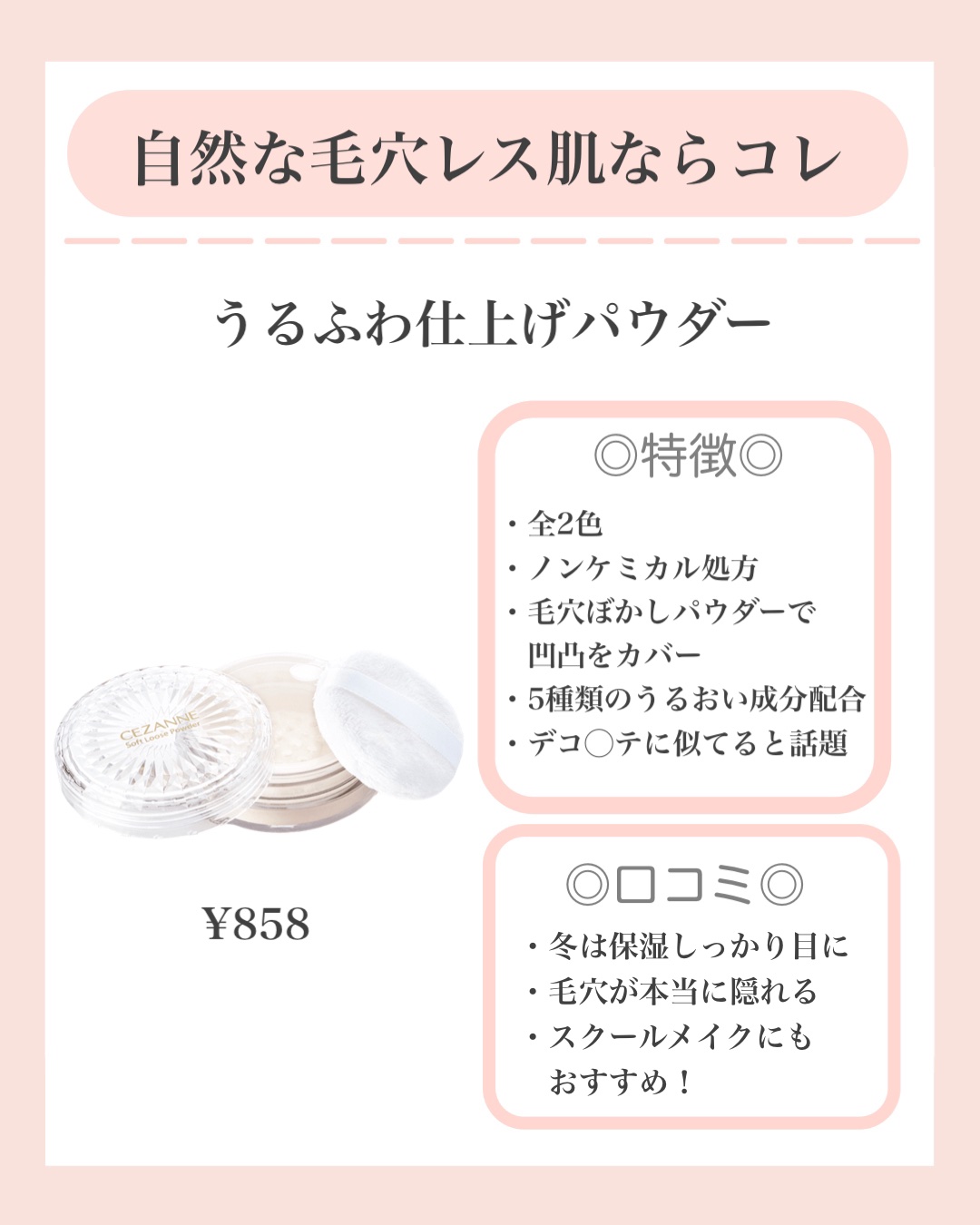 CEZANNE うるふわ仕上げパウダー | 858円 |