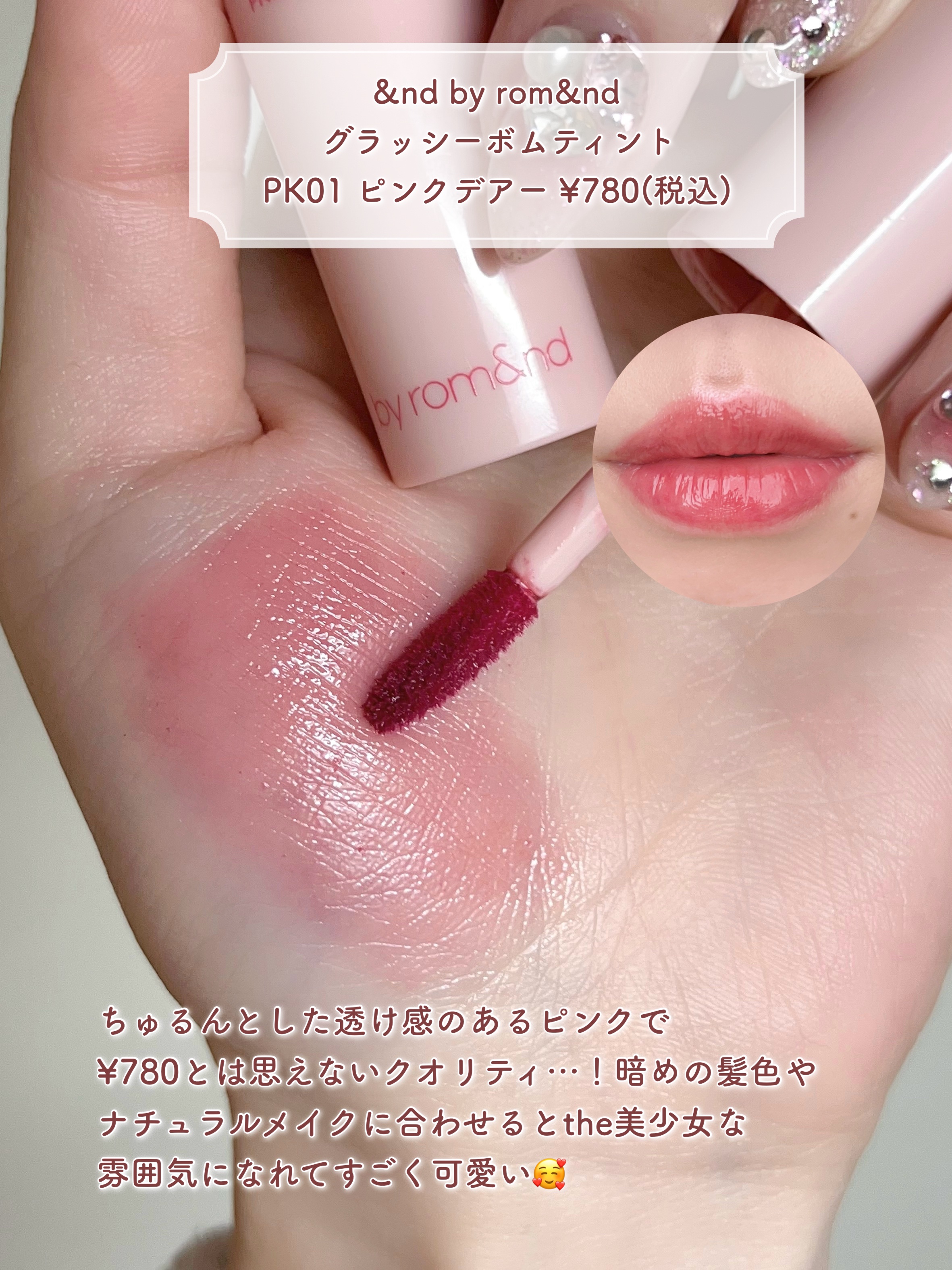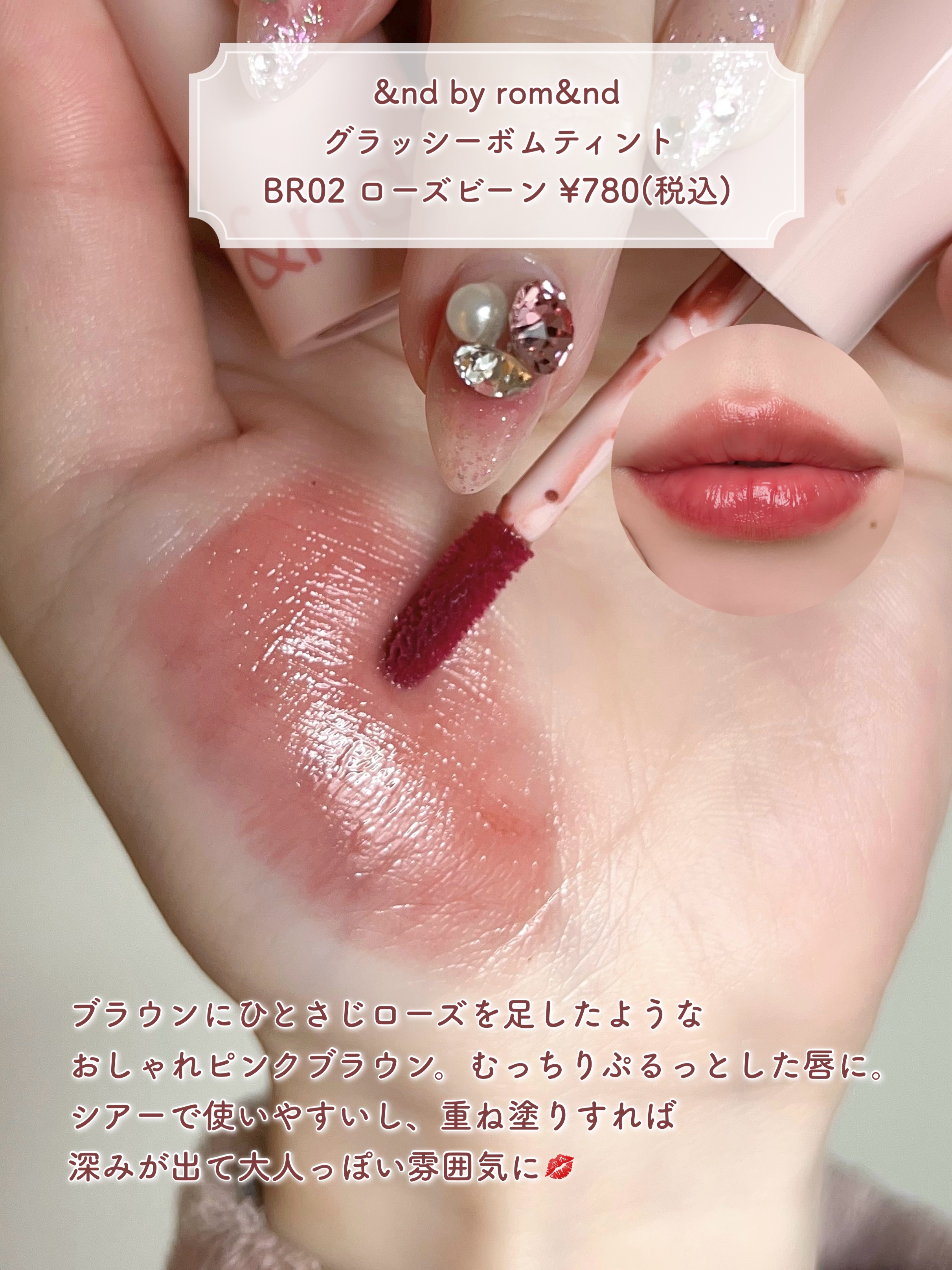 【イエべ秋の粘膜ピンクリップ4選】&ndbyrom&ndグラッシーボムティントBR02ローズビーン¥780#espoirクチュールリップティントグレイズアンダーモーブ¥2,420#rom&ndザジューシーラスティングティント30BAREMAR...