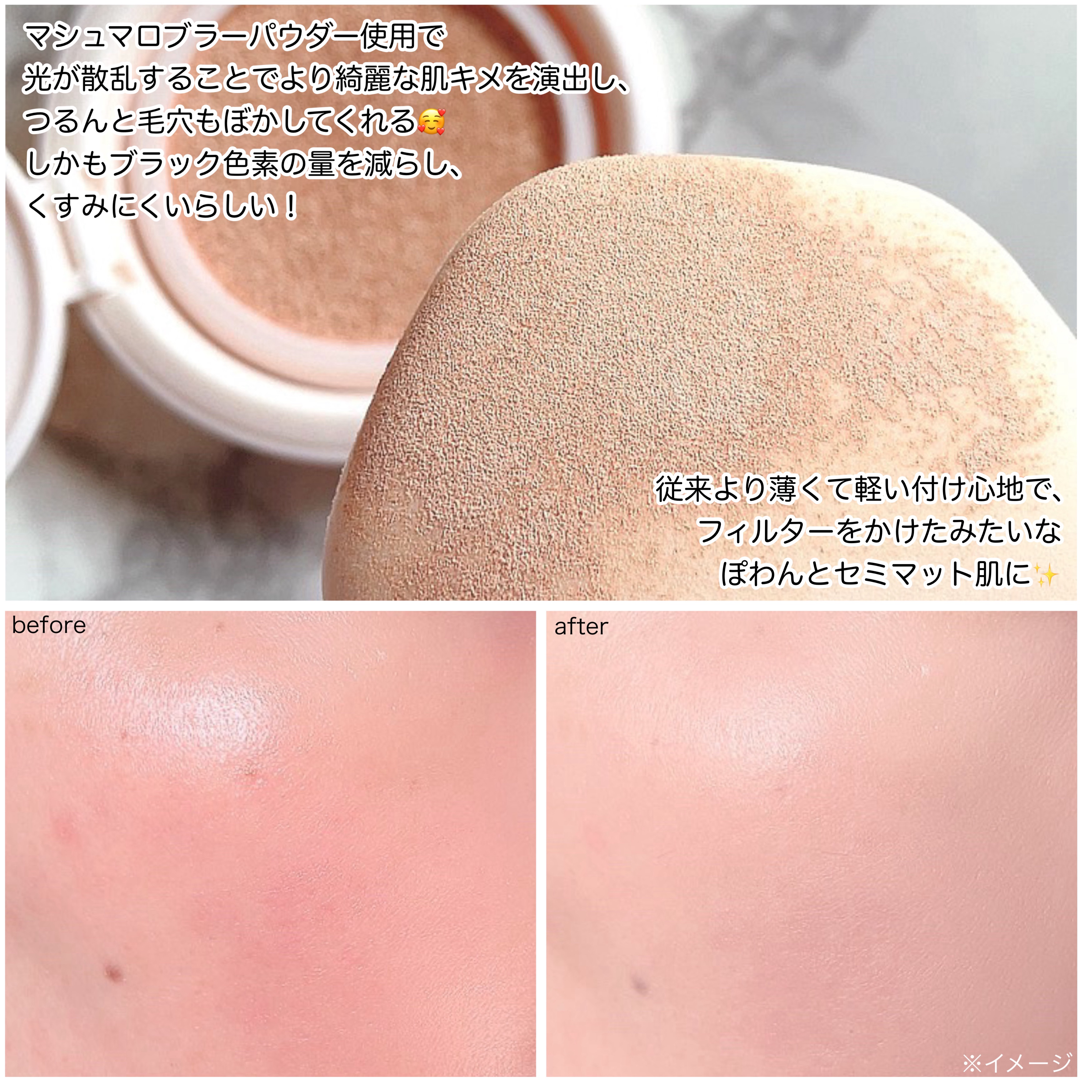 - ✓ブラーリーカバー 製品初のマシュマロブラーパウダーを使用! パウダー粒子内部の空間で光が散乱することで、より綺麗な肌キメを演出。 *原料的特性に限る (HDI/トライメチオールヘキシルラトンクロスポリマー,ポリメチルメタクリレート) ✓72時間持続する澄んだカラー シリコンゲルレイヤリングシステムで、プライマーを塗ったようにフィクシング。 ブラック色素の量を減らし、長時間くすみにくい! *72時間メイク持続/ 72時間毛穴カバー持続 / 72時間アンチダークニング持続認証完了 ✓密着フィッティングベース リタッチなしでメイク直後のまま!ヴィーガンコンディショニングエッセンス60%配合のセミマットテクスチャーの強力なフィクシング効果乾燥せずに52時間ロングラスティング。 先行販売日:2024年10月12日(土)よりロフト限定先行販売(一部店舗除く) 一般発売日:2024年11月16日(土)