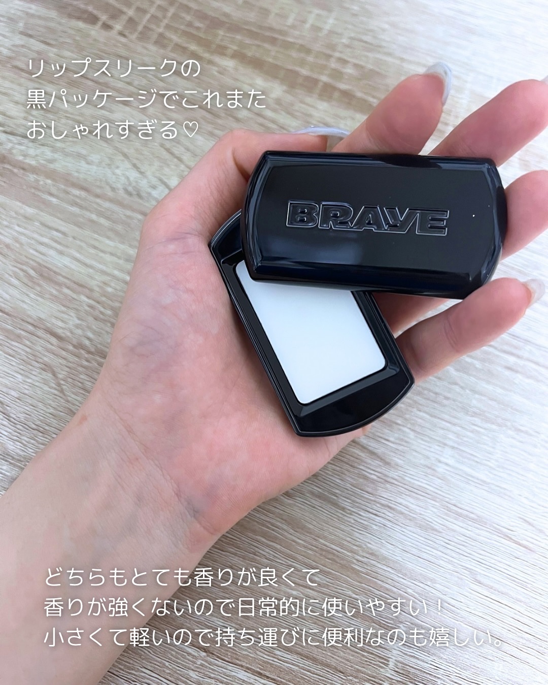 - センティッドバームは、クールで洗練された女性のスタイルを完成させるラストタッチとして誕生した「ソリッドパフューム」です。 アクティブな日々をエレガントに楽しむ女性から、静かで落ち着いた日常を慈しむ女性まで、BRAYEだけが持つ独特なムードをどこでも手軽に、そして魅力的にお楽しみいただけます。 ●ホワイトラム 穏やかな夜、ホワイトラームを片手に思索にふける品格のある女性の優雅で官能的な香り 甘くも冷ややかなベリー系の香りで始まり、ドライローズのローズ、バニラの風味を儚い香りと、 じっくりと熟成されたラムの深みが調和し、落ち着いた夜、静かなバーでホワイトラムを傾けながら思索にふける上品な女性を訪仏させます。 ●ブルージーンズ ブルージーンズのクールで爽やかな雰囲気と、瑞々しいシトラスが放つ その日に安らぎと解放感を込めた、心地よい香り。 瑞々しいタンジェリンの香りに新鮮なトマトリーフが加わり、誘き通る青空の下でブルージーンズを身に纏い、 自由な気持ちで街を歩くような心の安らぎがすっきりとした香りと共に広がります。