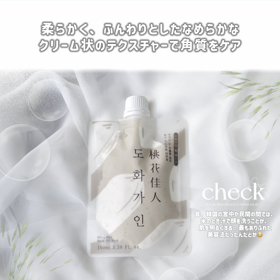 米ぬかエキス配合の化粧水たんぱく質やポリフェノールなどの栄養をたっぷり含んだ 米エキスでお肌の柔らかケアが叶う米ぬかエキス配合のウォッシュオフパック 全商品ヴィーガン認証(本製品はヴィーガン認証申請中)