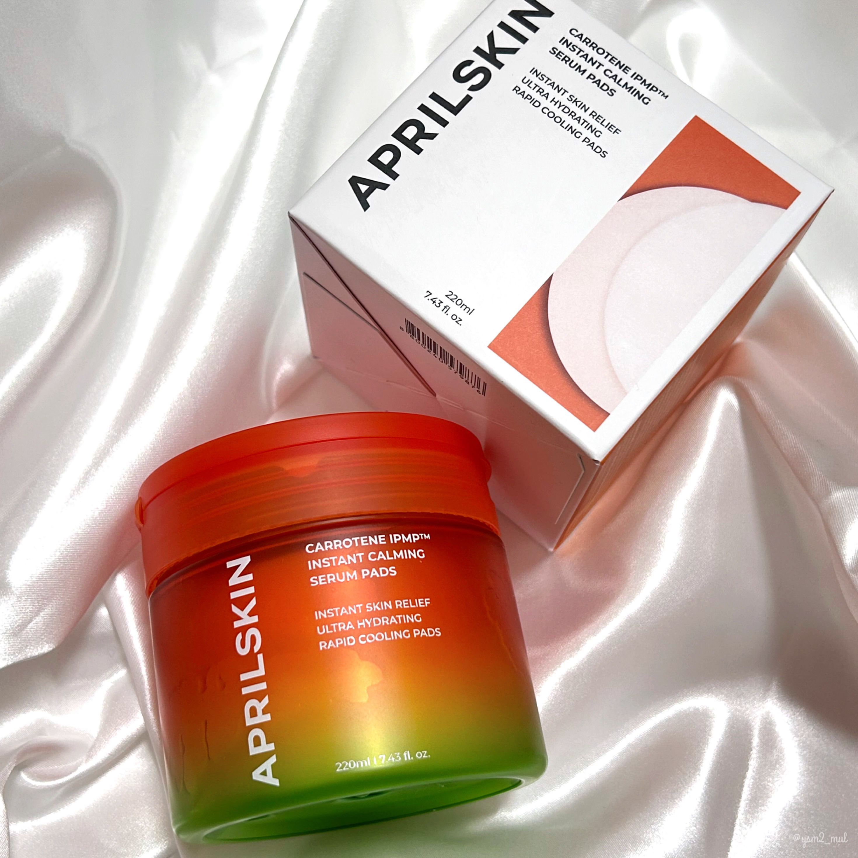 #giftingAPRILSKIN✔️カロテンICセラムパッドひったひたのセラムにふわふわ手触りのパッドが、80枚も入ってる♡パッドも大きめで部分パックがしやすいよ◎とろーり美容液が220mlたっぷり入っていて最後までヒタヒタのまま使える!フ...