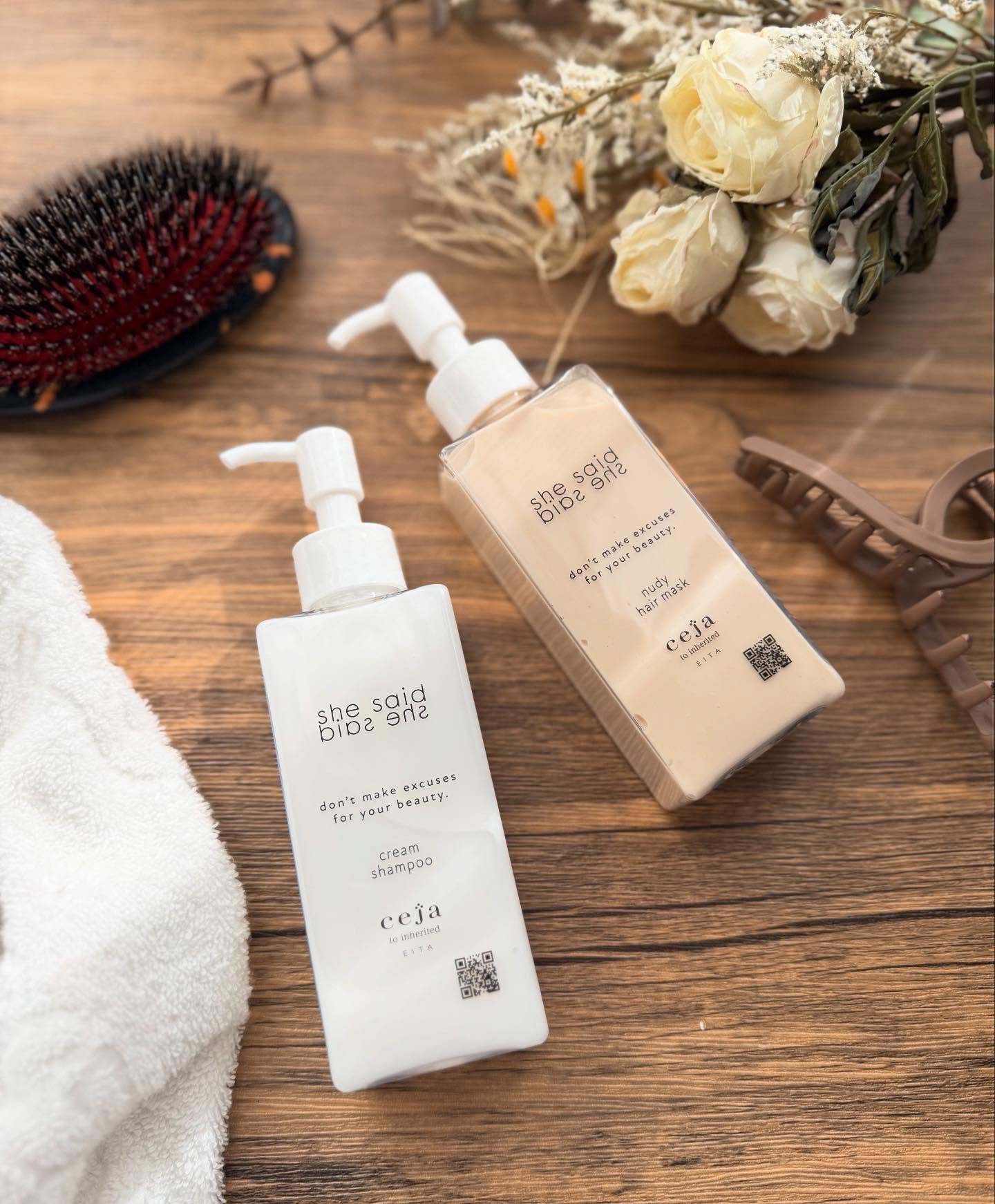 使うたびに髪が美しくもっと使いたくなる理由がここに ちる『クリームシャンプーのわりに泡立ちよく洗ってブローしたらさらっさらの髪に化けたよ♡ ヘアマスクがまたよくてしっとりするの◎ 柔らかく仕上げてくれたよ❀ パケもお洒落なのでギフトとしてもおすすめの商品♡ シーセッド クリームシャンプー&ヌーディヘアマスク 4,400円