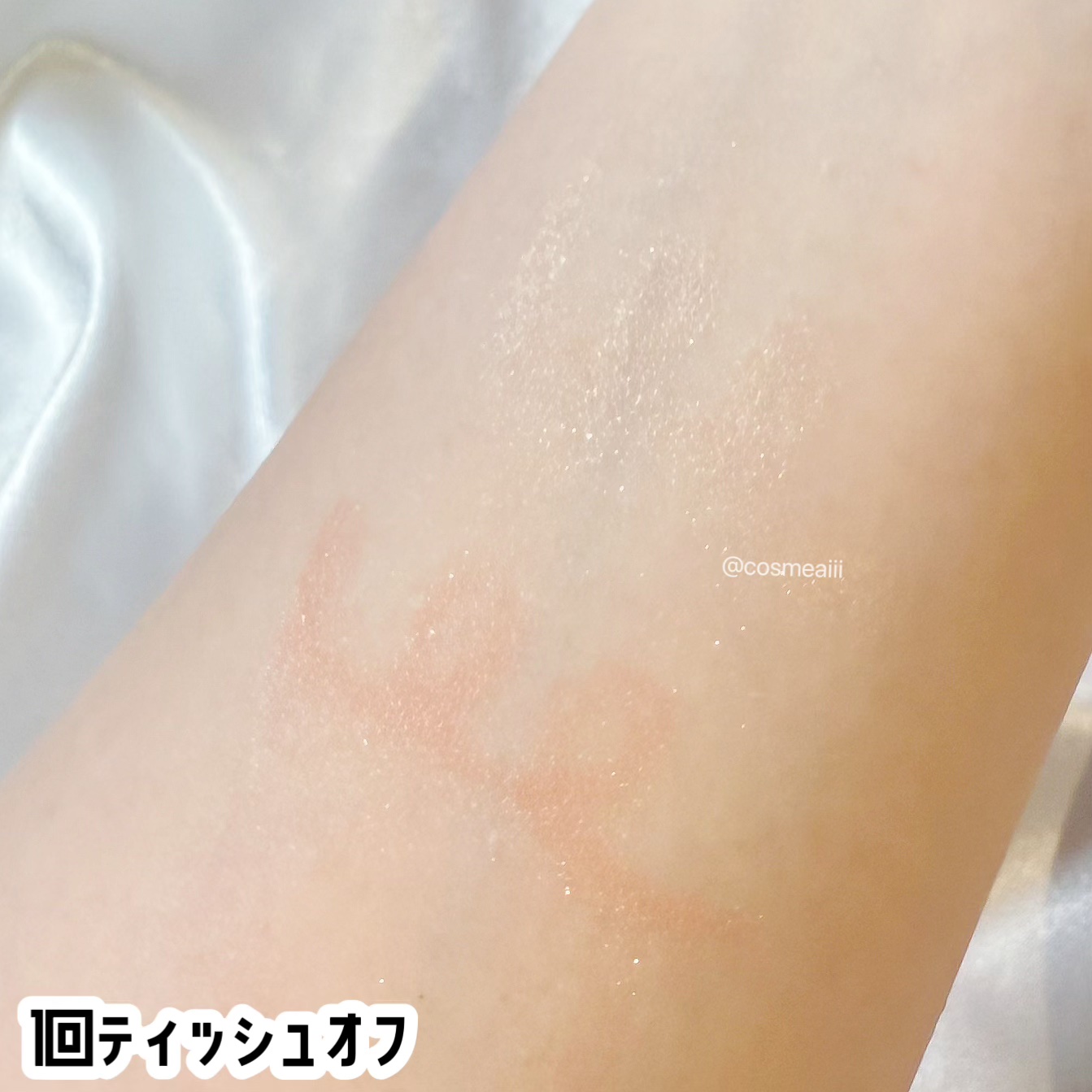 今までみんなご存知のジューシーラスティングティントも愛用してますが 自分的にはかなり高級感がアップした↑ 実物みて感動するぐらいめっちゃ好きなパケ😭🌷 名前通りピーチカラーでイエベさん絶対買って欲しいかわいい色です❤️ イエベさんでも簡単に使えるローズカラーで デートにおすすめなお色です◎ オレンジブラウンカラーで 塗ったら一気にオシャレになれるし秋にぴったりなカラーです🍁 正直。既存のジューシーラスティングティントと似てるような質感ですが くちびるに塗ると新作のほうが若干塗りやすくなった気がします 色持ちは相変わらずめっちゃ良いです◎ 画像の7枚目からはスウォッチ、参考になればと思います。 ティッシュで擦っても色はちゃんと残ってる 既存のティントリップは甘いキャンディな匂いがしたが、 今回の新作は少し匂いもしますが、嫌な甘い匂いではない。 匂い人それぞれ感覚違うですけど、個人的には結構大丈夫だし、むしろ前の商品より好き♡
