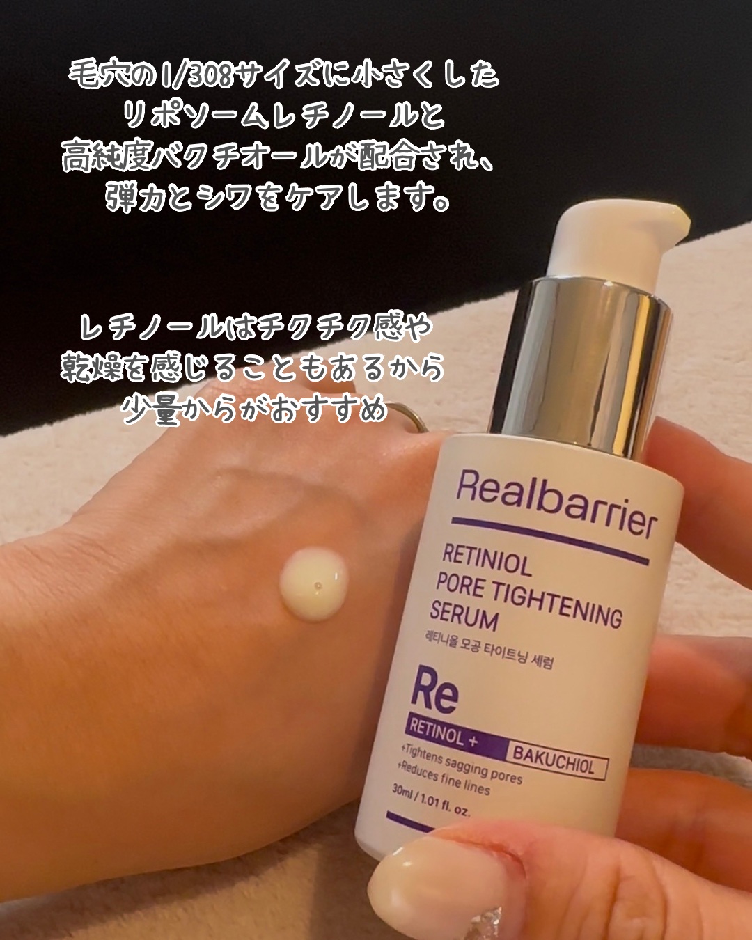 RealBarrier レチニオールポアタイトニングセラム、ペプチビタCブレミッシュセラム💜レチニオールポアタイトニングセラム💜皮脂腺が発達して毛穴が広がりやすいバタフライゾーン(両頬と鼻のゾーン)の毛穴をケアし、ハリのある肌へと導く、毛穴引...