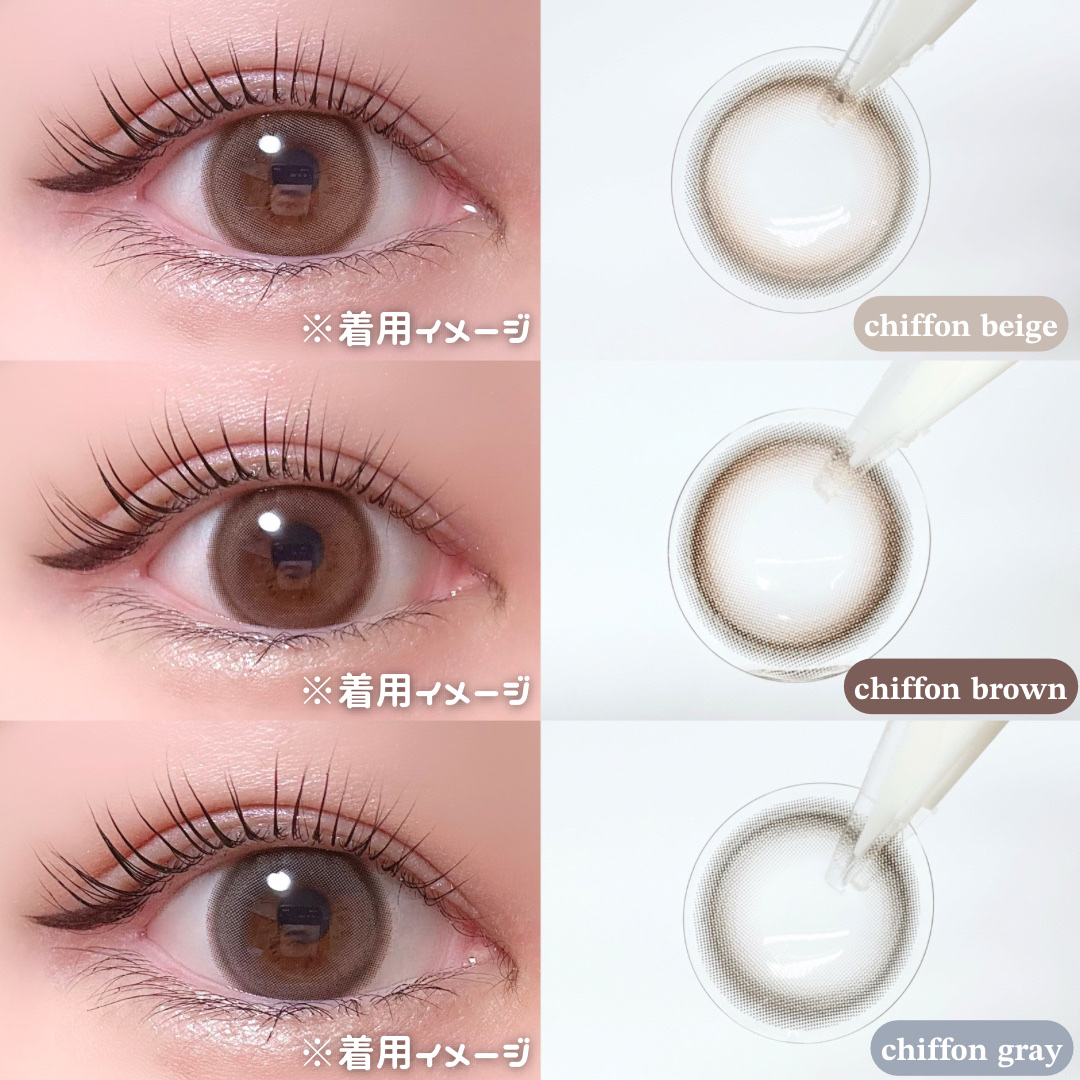 - 瞳をドレスアップ 森香澄推しカラー「chiffon pink」ついに誕生!! 幸せをまとう大人かわいいあざとレンズ ”多幸ピンク” ・ウワサPOINT1:たった3秒で印象チェンジ!奇跡のスッピンアップデート ・ウワサPOINT2:韓国で話題のカラコンブランドがデザインをバックアップ ・ウワサPOINT3:どんな日本人女性にも合うこだわりのバランス、着ける人を選ばない◎ ・まるでシフォンドレスをかぶせたような柔らかく自然なトーンアップデザイン ・2トーンカラーのグラデーションで奥ゆかしい瞳へ ・長時間着けても乾きにくい低含水処方(38.5%) ・全4色 chiffon brown / chiffon beige / chiffon gray / chiffon pink 使用上の注意 〇このレンズは1日使い捨てコンタクトレンズです。 〇ご使用の前に必ず添付文書をよく読み、正しくお使いください。 〇眼科での定期検査を受けてください。 〇目に異常を感じたら直ちにレンズの装用を中止し、眼科医の受診を受けてください。
