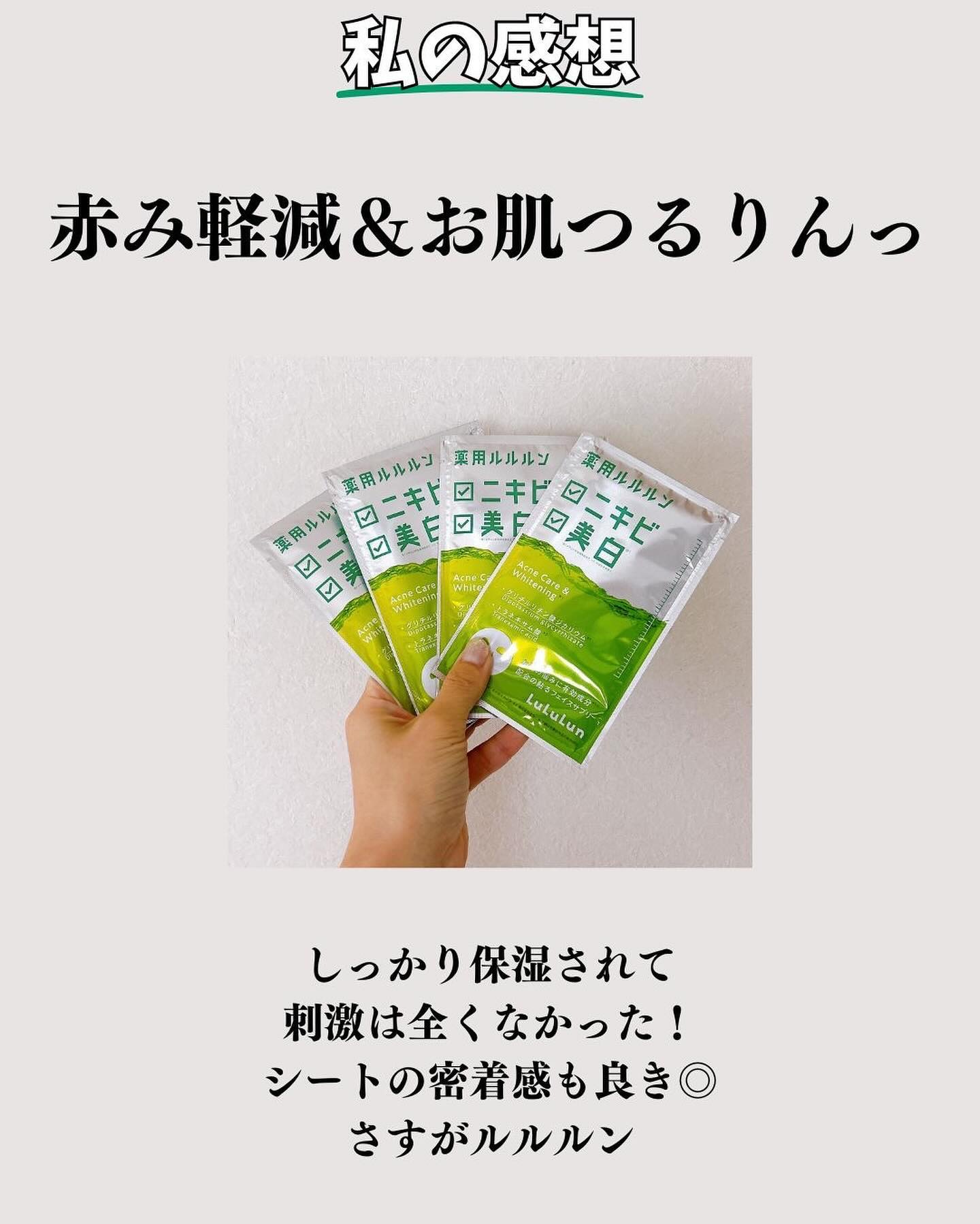ルルルン様からいただきました薬用ルルルン美白アクネ[医薬部外品]グリチルリチン酸ジカリウムとトラネキサム酸が配合された薬用フェイスマスク✨シートはちょっと大きめのサイズ感で特に横幅しっかりめに感じました!天然素材でできたシートはやわらかく、美...