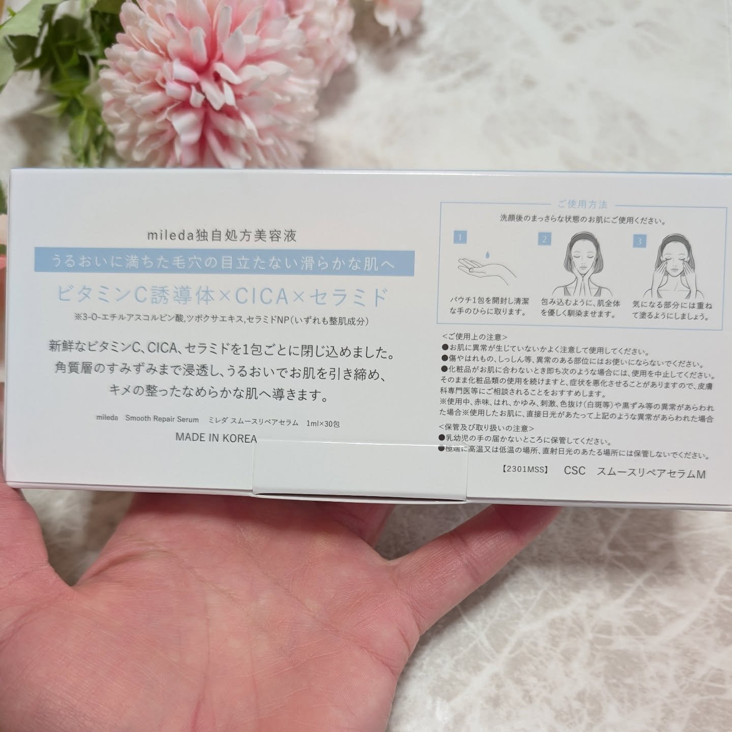 - 【mileda独自処方美容液】 うるおいに満ちた毛穴の目立たない滑らかな肌へ 敏感肌の方でも使えます ●次世代型ビタミンC誘導体※5%配合 ●肌に配慮した処方設計 ※3-O-エチルアスコルビン酸(整肌成分)