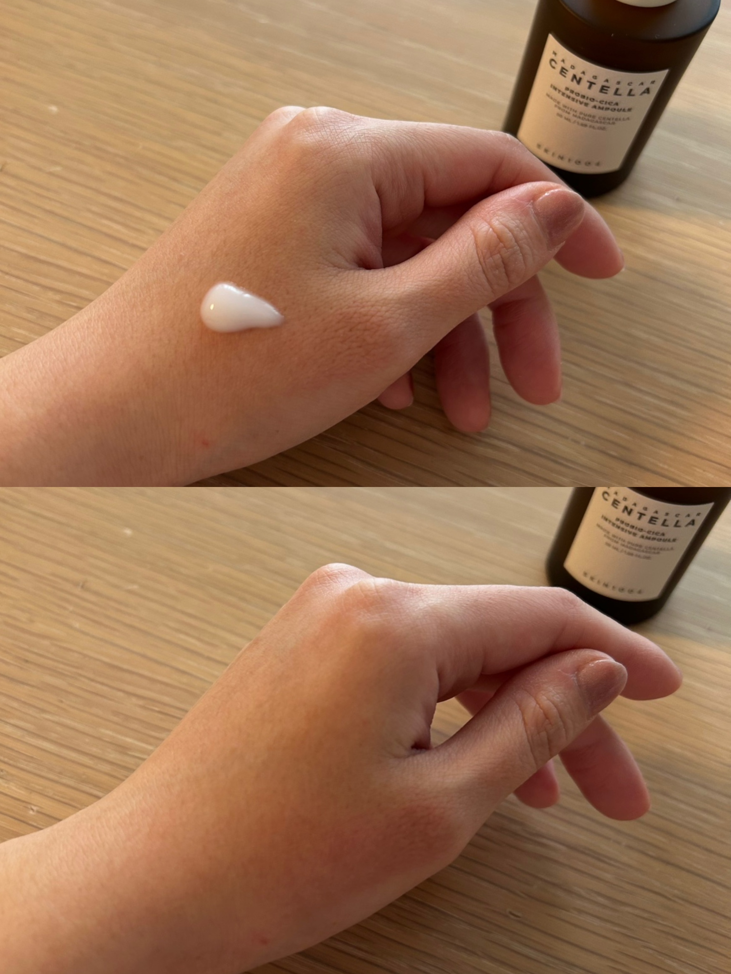 肌に乗せても垂れ落ちないくらい、もったりと濃厚な美容液です! スポイトは気持ちゆっくりめに吸い上げると、うまく使用できると思います。 すぐに浸透し、肌がしっとりと仕上がります。 保湿力を知るため、試しにメイク前のスキンケアを化粧水と、こちらのアンプルのみにしてみましたが···なんとパサつきを感じませんでした! 使い始めて1日目から保湿効果をしっかり感じられ、肌の調子も良くなります。 日頃のスキンケアにこのアンプルを足したら、冬でも乾燥知らずで過ごせそうです!