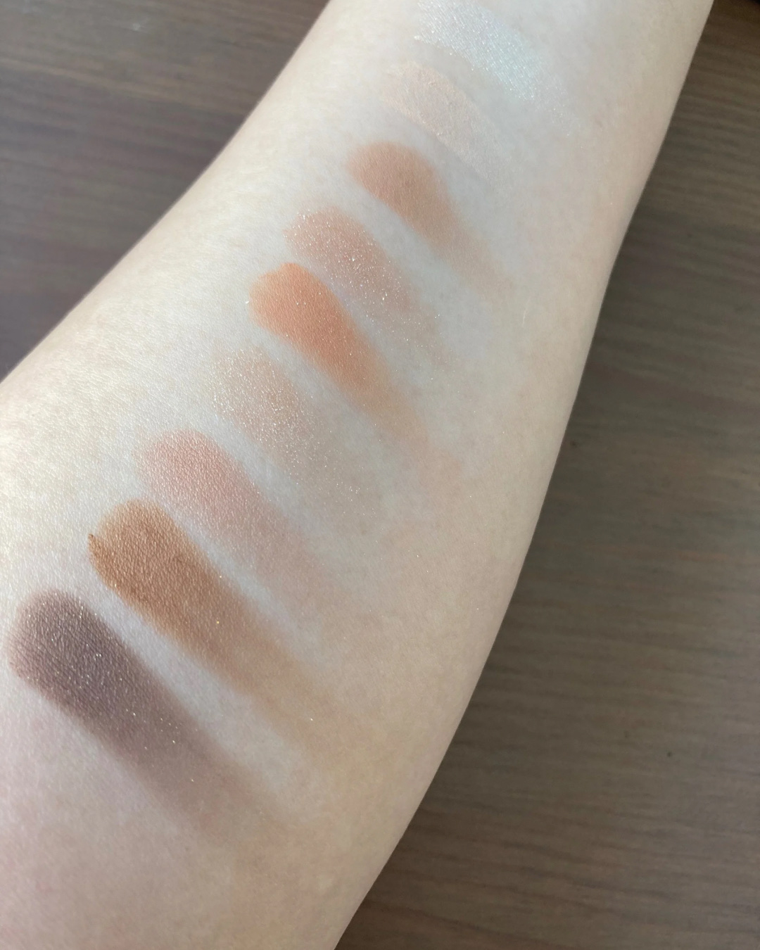 ローラメルシエシマーアンドグロウフェイスパレット撤退だってー?!?!?!っていうニュースを見て思わず衝動に近いレベルで買った🥹でもきらめきとか使いやすすぎて何も後悔してない👍ハイライト、チーク、ブロンザーの3色フェイスカラーパレット色味はシア...