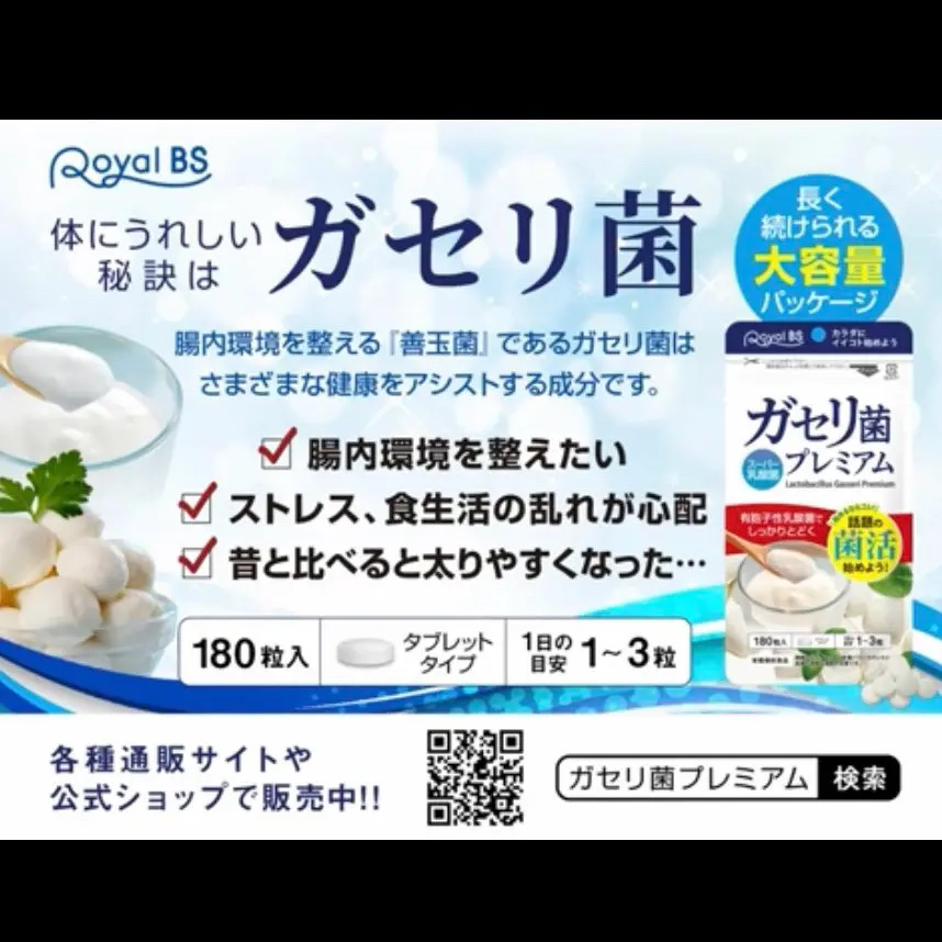 話題の乳酸菌を濃縮配合した菌活サプリメント ガセリ菌プレミアム! ガセリ菌は、腸内環境に大切な善玉菌 ガセリ菌は乳酸菌🦠 サプリメントだから牛乳やヨーグルトが苦手な方でも手軽に摂取できるのがうれしいよね