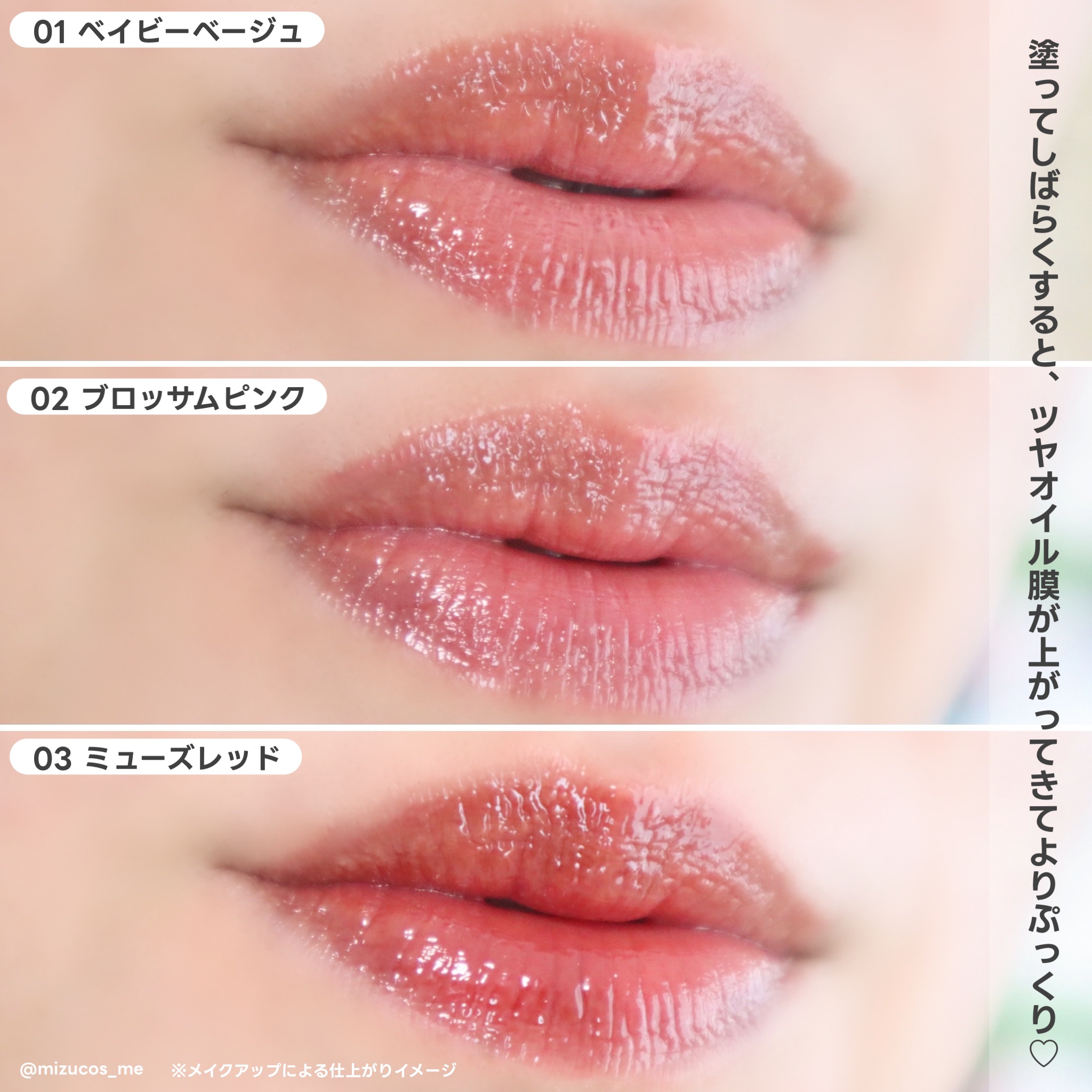 | 塗った後にだんだんツヤオイル膜が浮き上がって、じゅわっとツヤがあふれる! | 詳細を見る | |