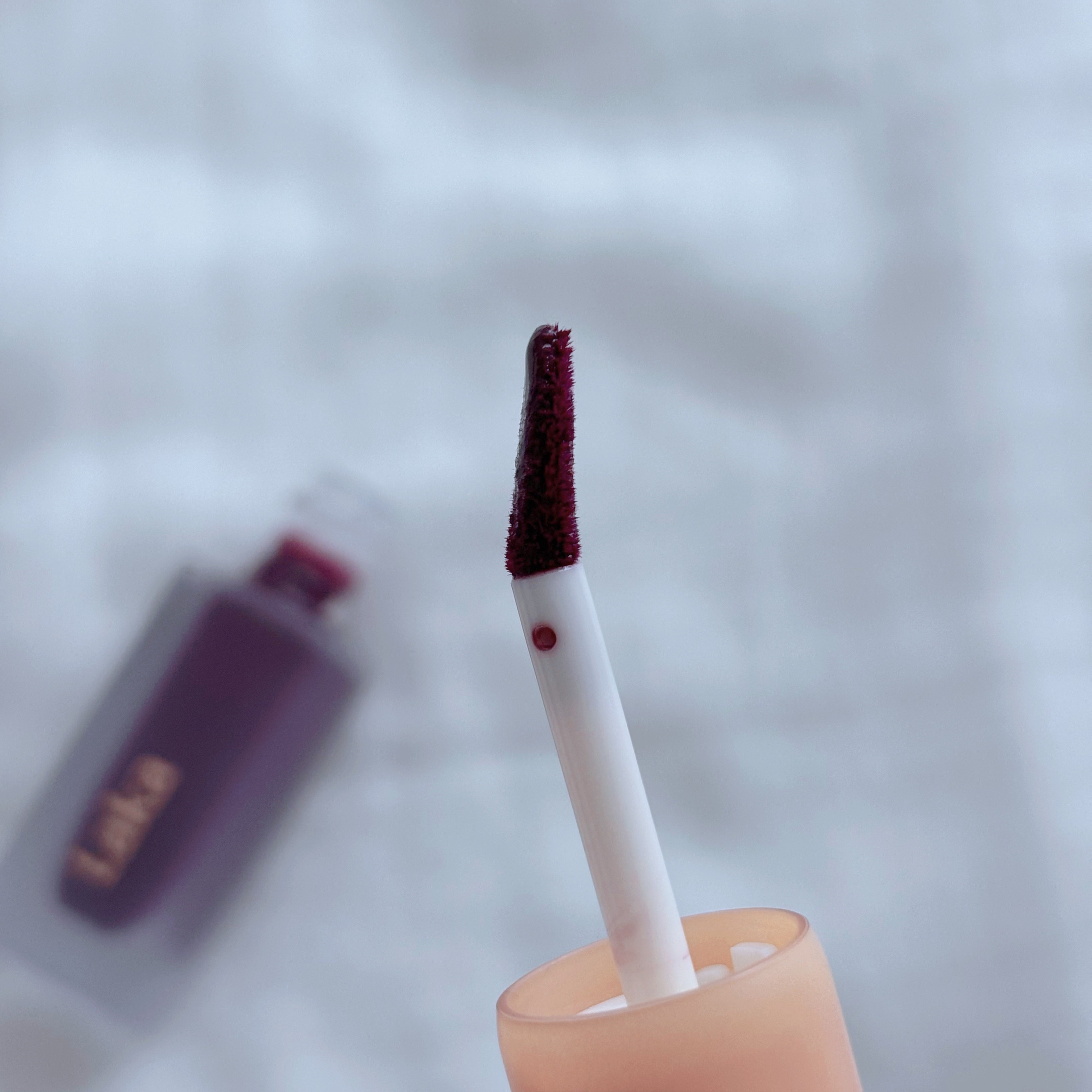 とろみジェルでぽってりツヤ唇。 ぷるんっと弾むように軽い、グロスリップ。 深みのあるミュートプラム。 サッと1度塗りなら透け感のあるシアーな発色に、重ねたらぷっくりツヤ感の高発色。 くぼみのあるチップで、シリコン素材なので衛生面も◎! 唇も荒れずに使えて良かった^ ^
