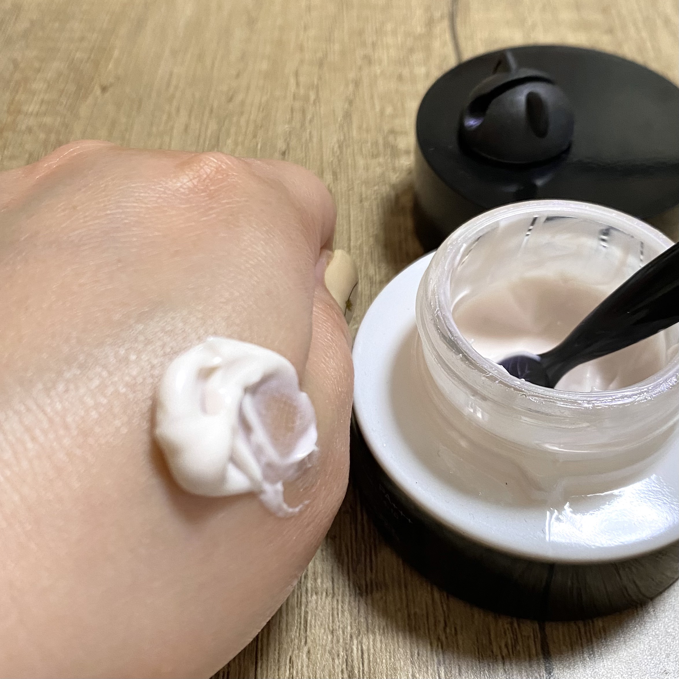 本物のホイップクリームみたいなふわっふわのベタつかない美容液クリーム✨️ フタを開けるとパッと見はこっくりした雰囲気なのに手にとると軽いふわふわしたクリーム☁️ スキンケアには珍しいホワイトティーの香りで最後の最後までしっかり癒してくれます☺️✨
