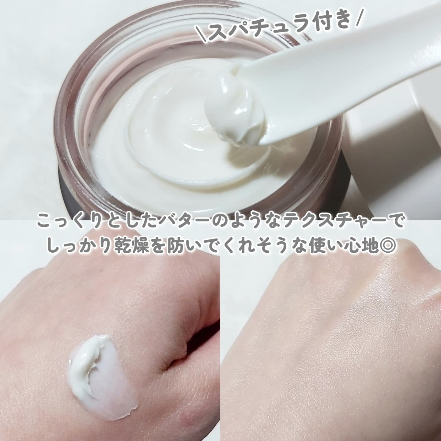 | バターのように柔らかくなめらかなテクスチャー。するする~っとなめらかに伸ばしやすく肌なじみが良いです🥰 | 詳細を見る |