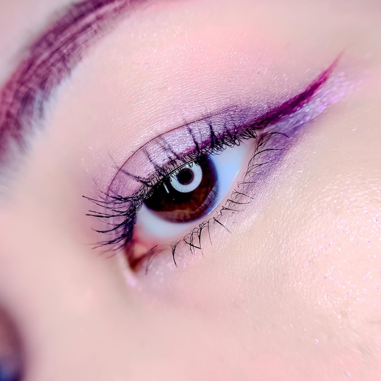 ピンクにグレージュも良いですね👌💗 今日は可愛らしい感じにしてみました💕 上下瞼黒目〜目頭側にラメを塗ってキラキラさせております🤩 目尻はマットのピンクを濃いめに重ねて💗 グレージュのアイライナーと相性◎