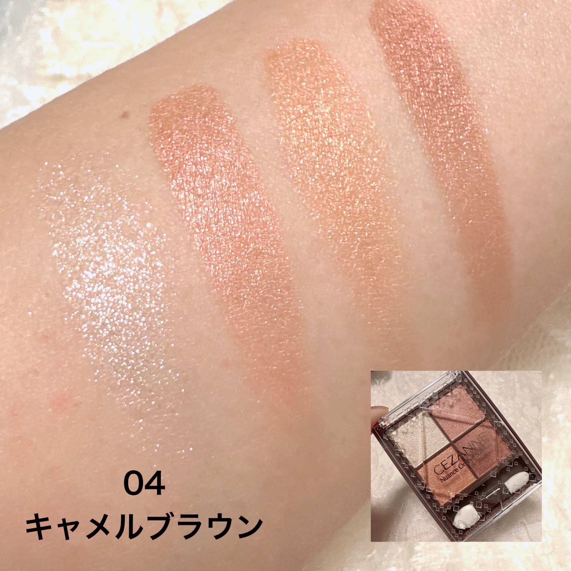 サテンのような質感が美しい、パールリッチな4色アイシャドウ。 重ねても濁りにくいクリアベール処方で透け感あるニュアンスカラーが楽しめます。 透け感がとても品良く、左上のラメも細かいから大人でも使いやすいと思います。透け感があると発色を調整できて、盛り耐性がない私でもいい感じに使えました。 コスメの移り変わりがはやすぎて、新作が出るのが楽しみな反面、廃盤になるものとのお別れが寂しく感じます。