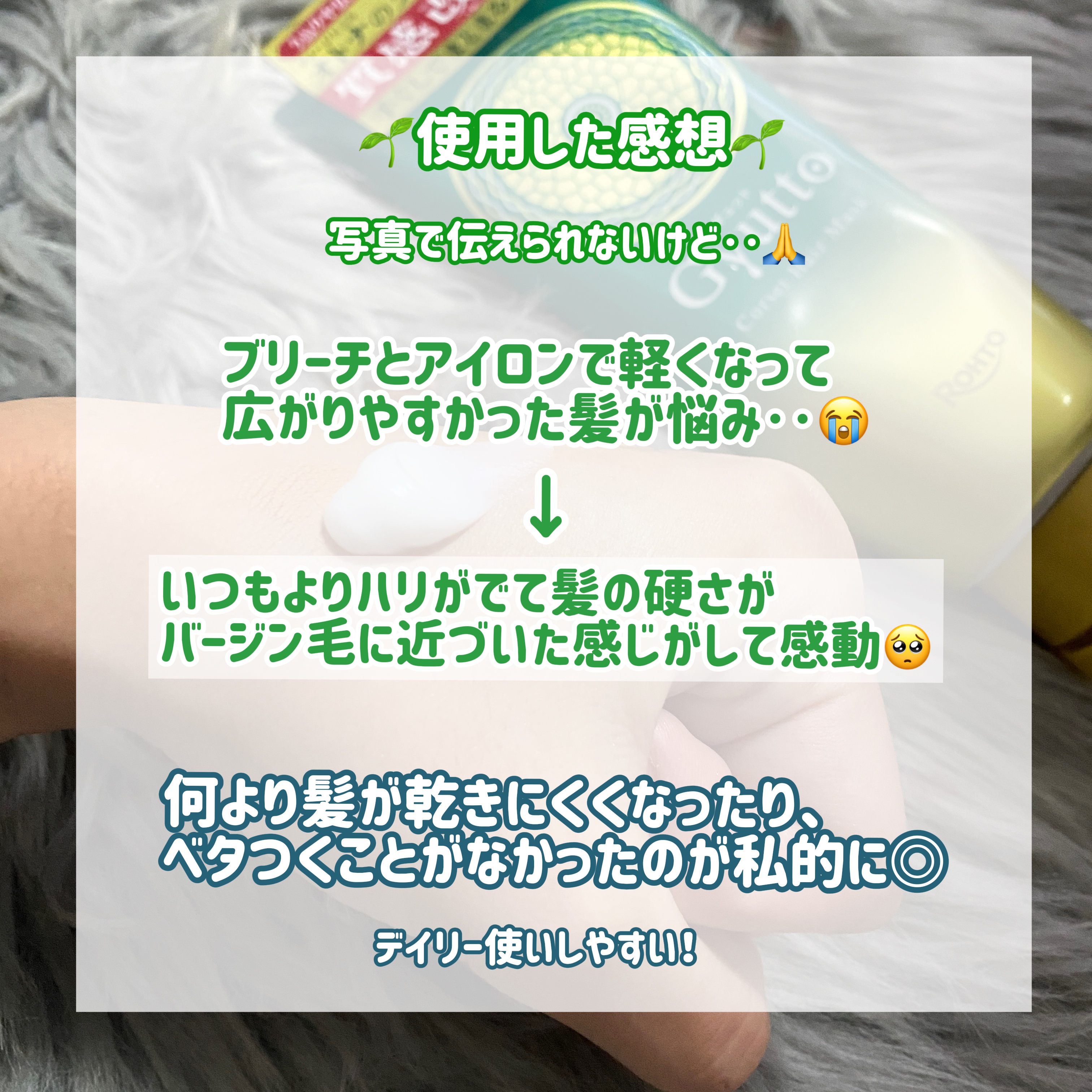 ロート製薬から新たなヘアケアブランド Gyuttoが誕生したよ! なめらかなテクスチャーで伸びが良く 髪にもよくなじむ。 ドライヤー後は手ぐしでするんとまとまる! うるおいでパサつき感もなくなめらか。