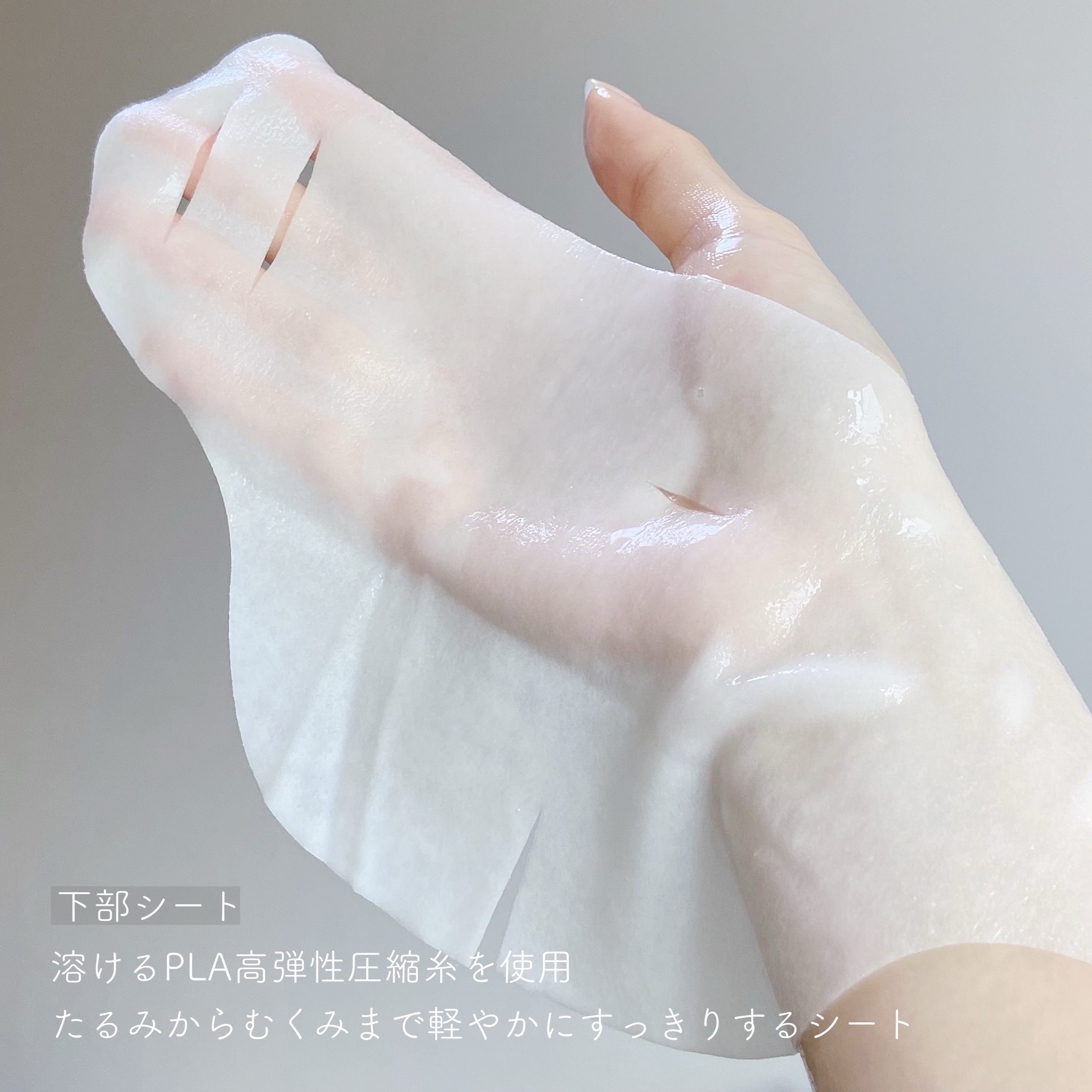 | シート自体の厚みはやや薄めでフィット力高し。 そして何よりとろとろの美容液がヒタヒタに…🥺 | 詳細を見る |